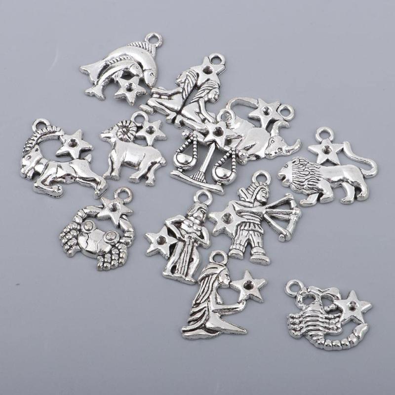 Antique 12 Zodiac Charms Pendant Jewelry Making Craft Antique Silver