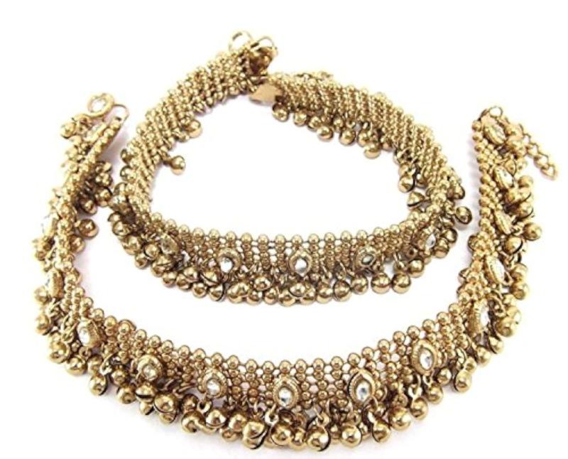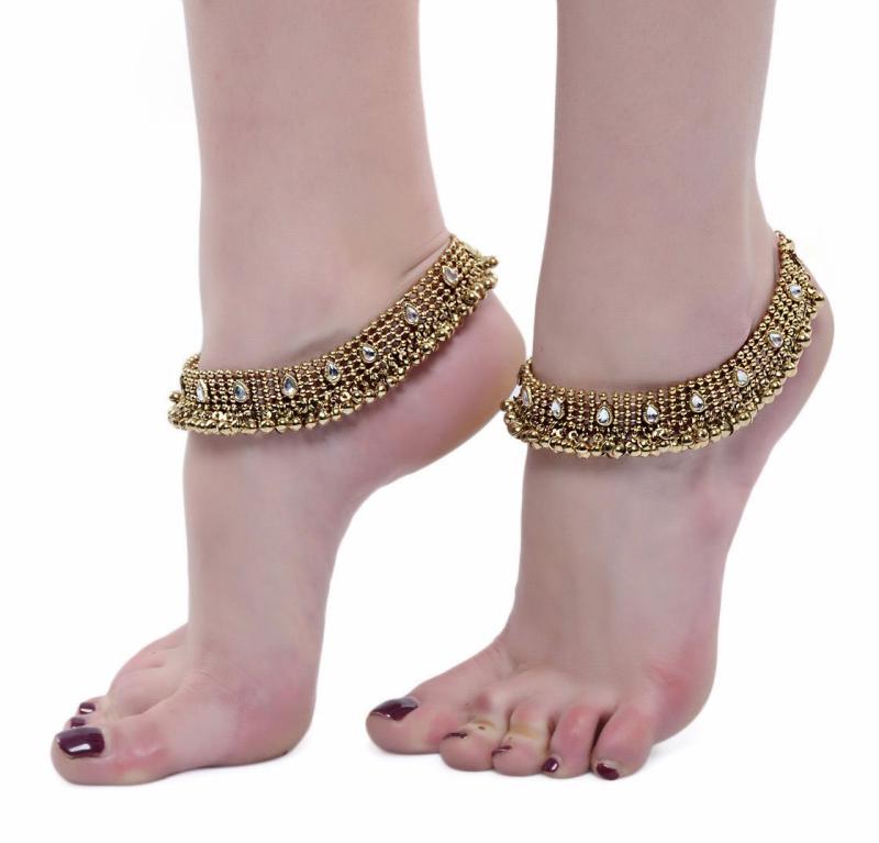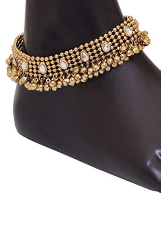 Elegant and traditional Kundan studded payal anklets crafted for women with intricate design and antique finish.