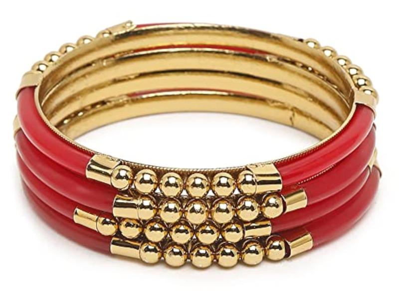 Elegantly designed set of 4 traditional bangles with antique plated finish.