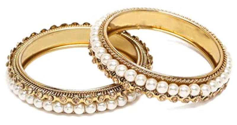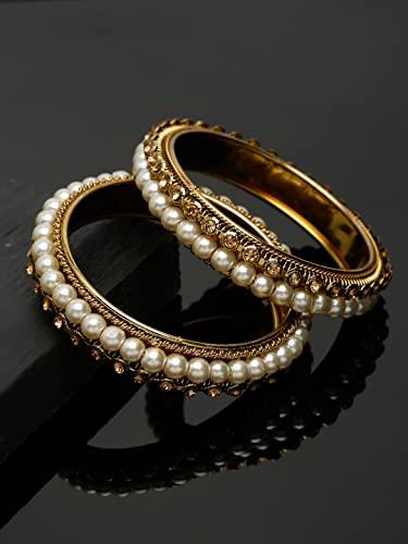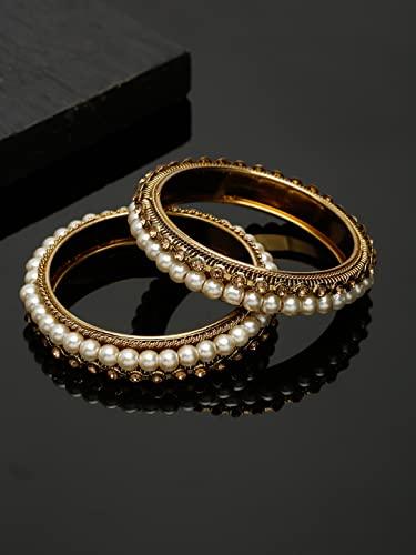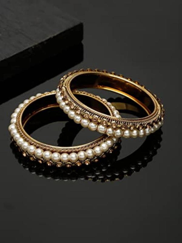 Enhance your look with this set of 2 stylish traditional bangles featuring antique plating. Perfect for adding a touch of elegance to your outfit.