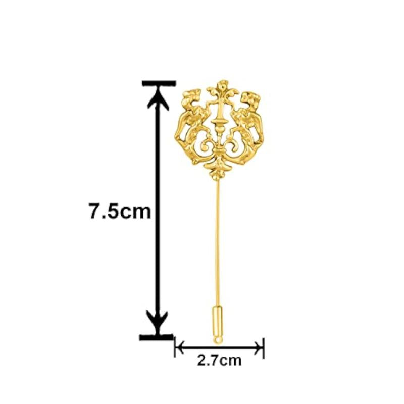 Elegant and fashionable brooch/lapel pin featuring an antique royal lion design. Gold plated for a luxurious finish.