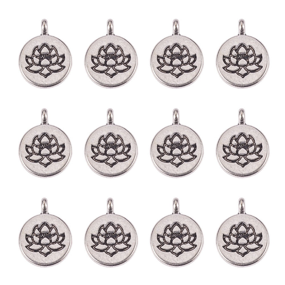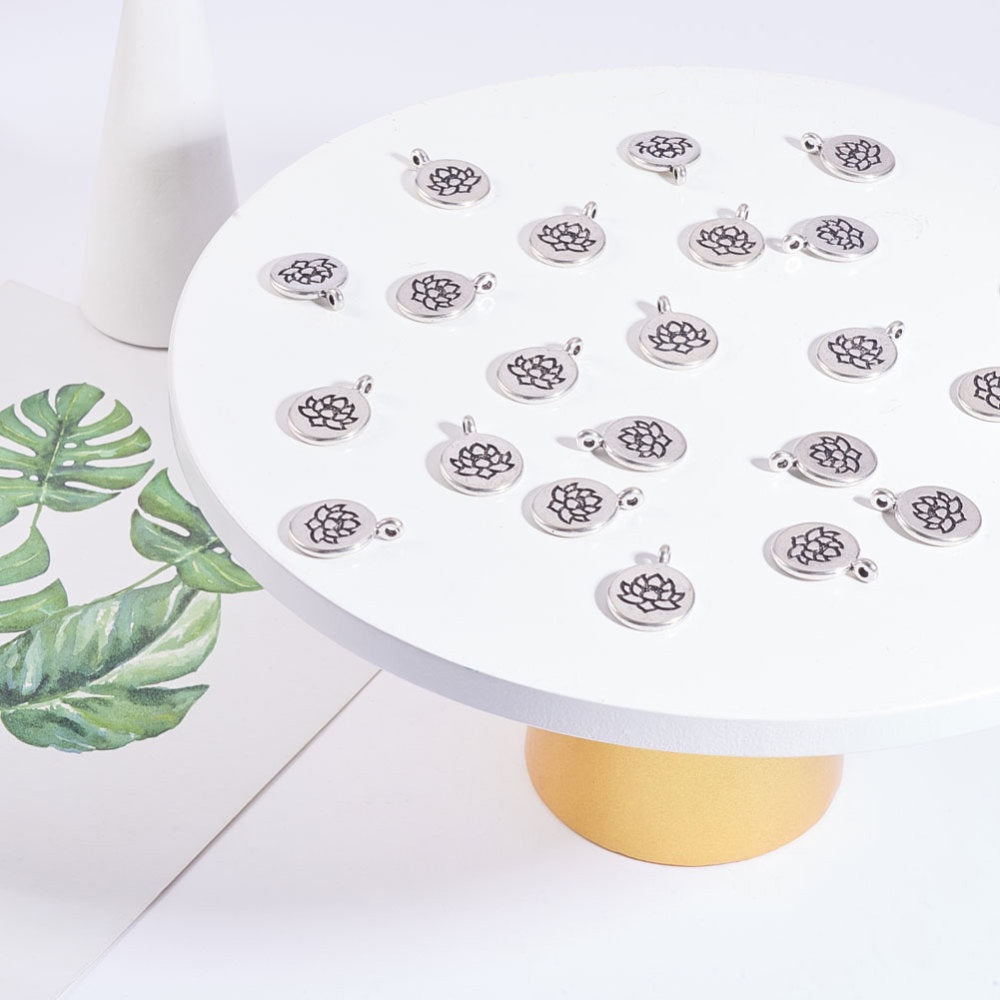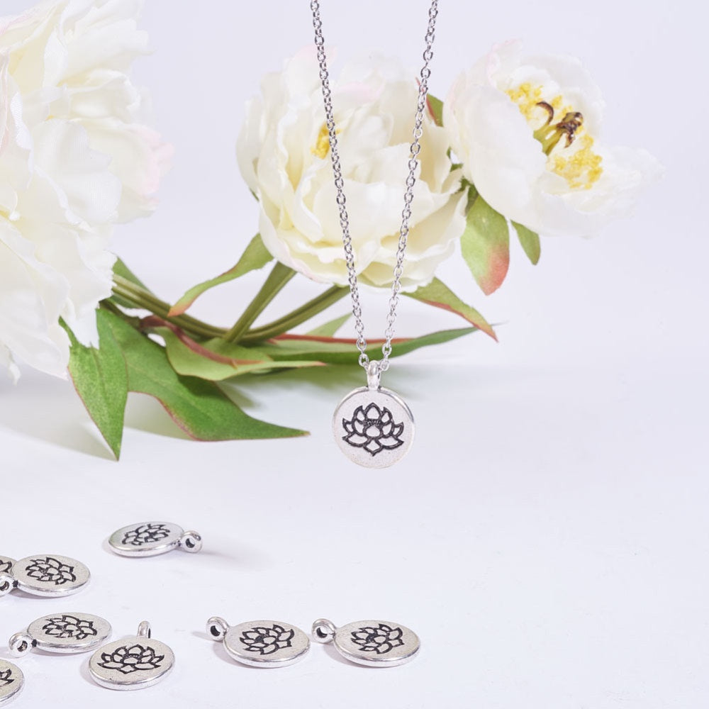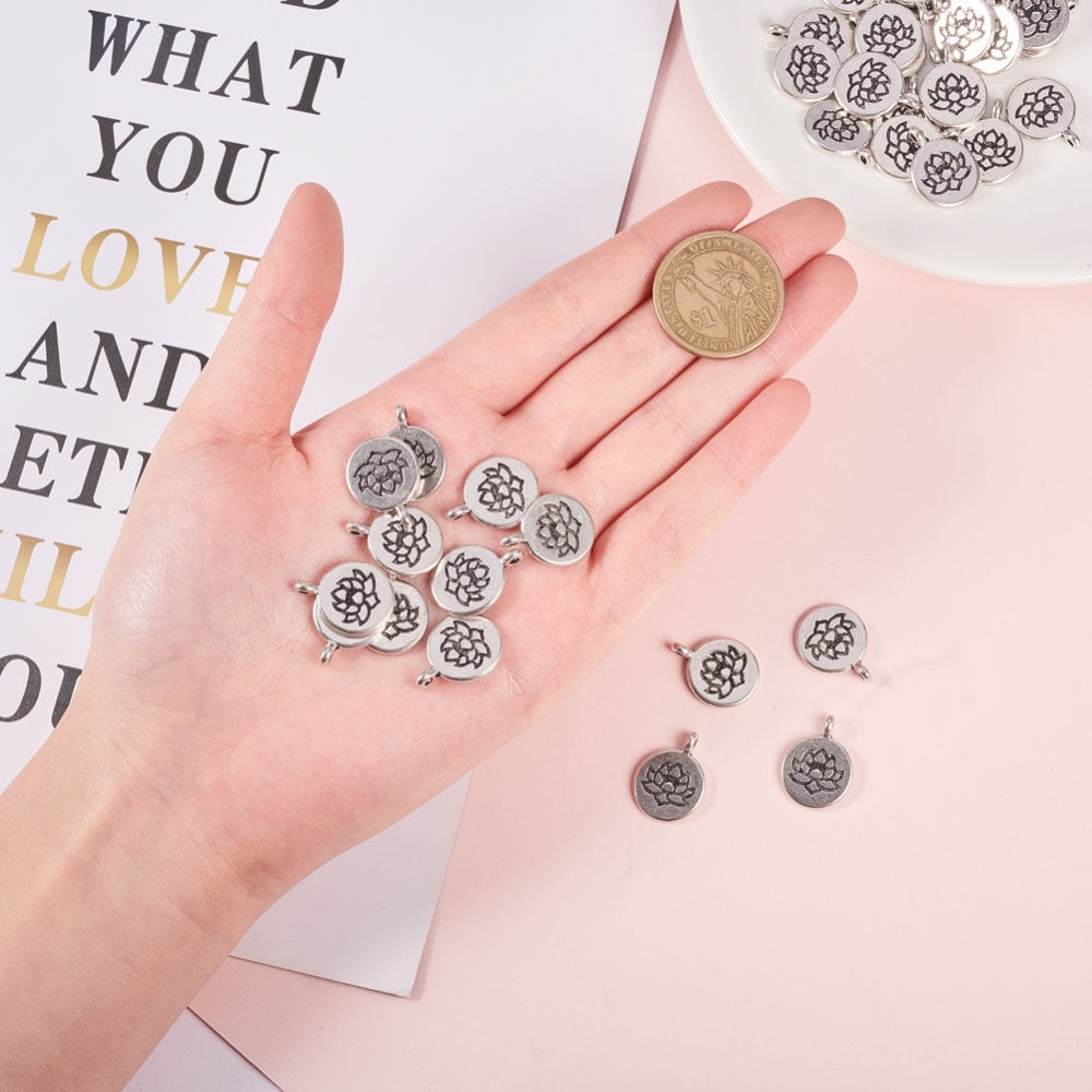 Create stunning jewelry with this antique silver pendant featuring a lotus pattern. Ideal for earrings, bracelets, necklaces, and more.