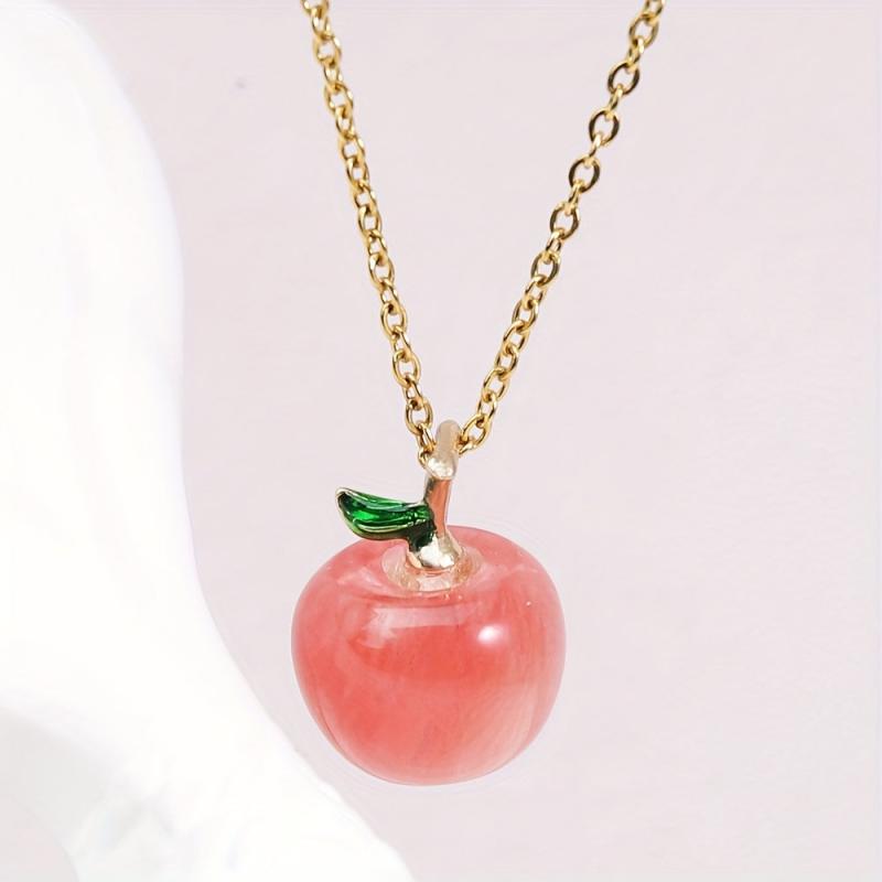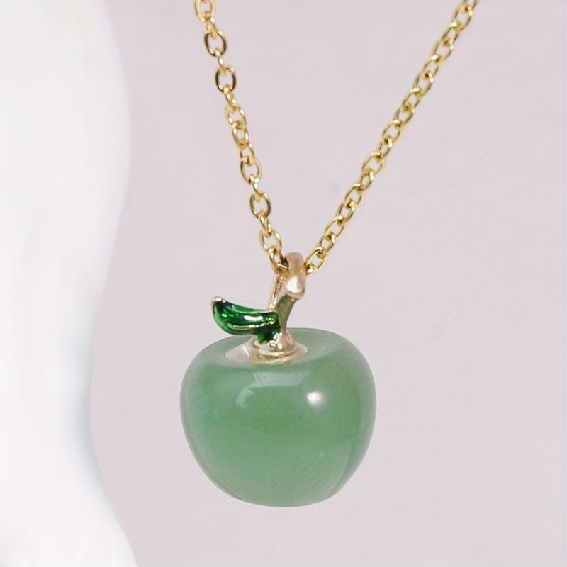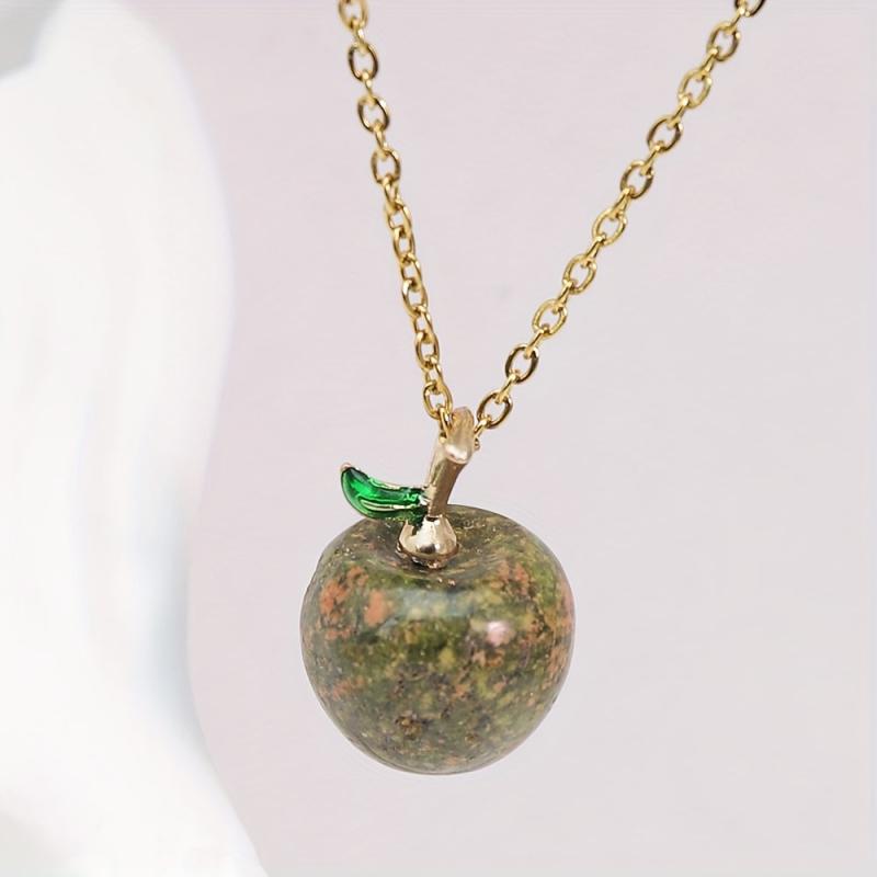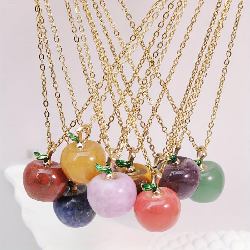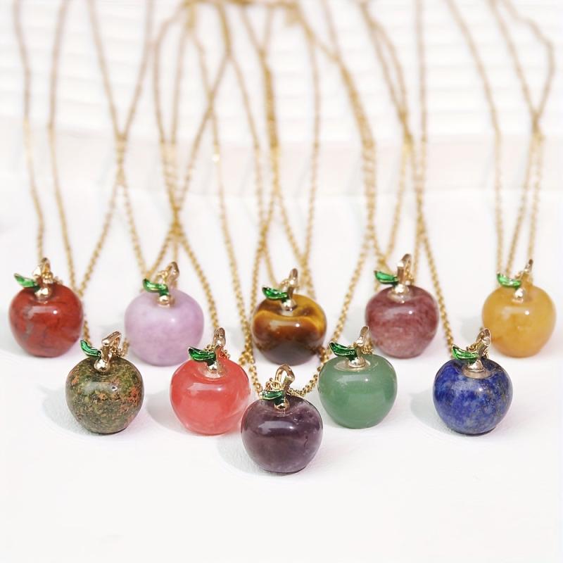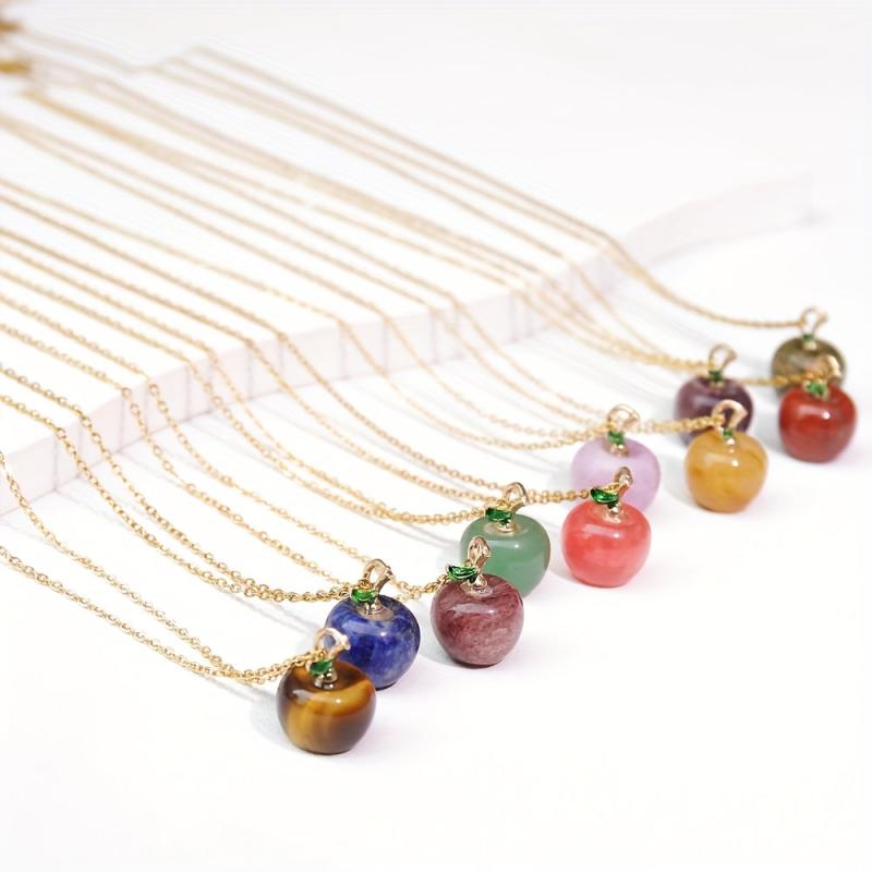 Elevate your casual attire with this stunning apple shaped pendant necklace featuring multicolor gemstones on a golden tone chain. A perfect gift for women.