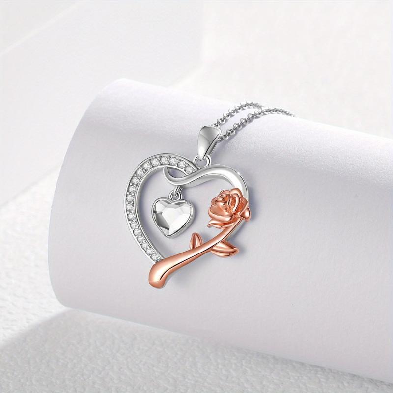 This stunning birthstone necklace features a heart-shaped rose golden pendant crafted from 925 sterling silver. It is the perfect gift for any woman born in April.