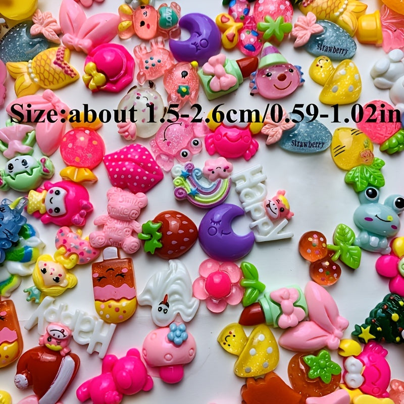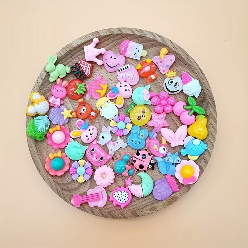 Bring color and fun to your DIY projects with these colorful assorted cartoon charms. Perfect for hairpins, phone cases, fridge decorations, and more.