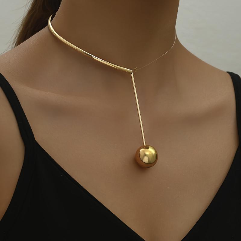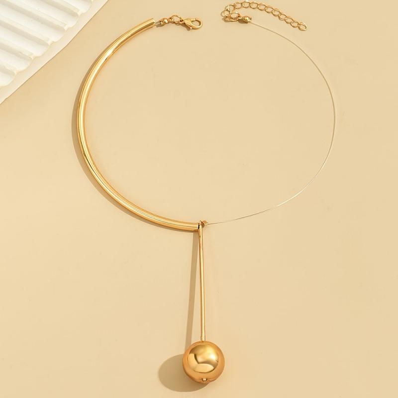 This punk and minimalist necklace features a golden tone metal circle pendant on a transparent fish line chain. Perfect for everyday wear and vacation outfits.