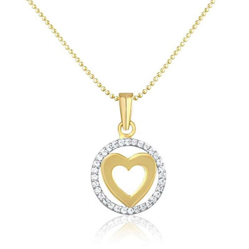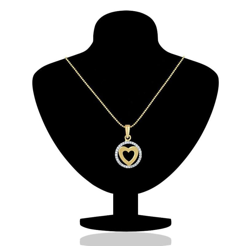 Plated aureole heart pendant adorned with CZ stones and comes with a stylish ball chain.