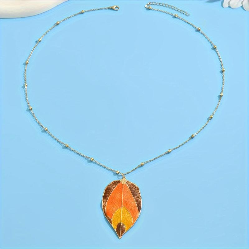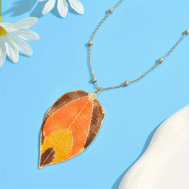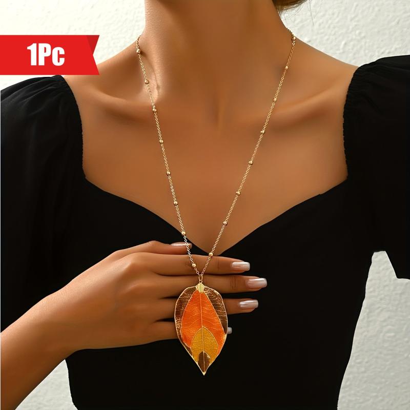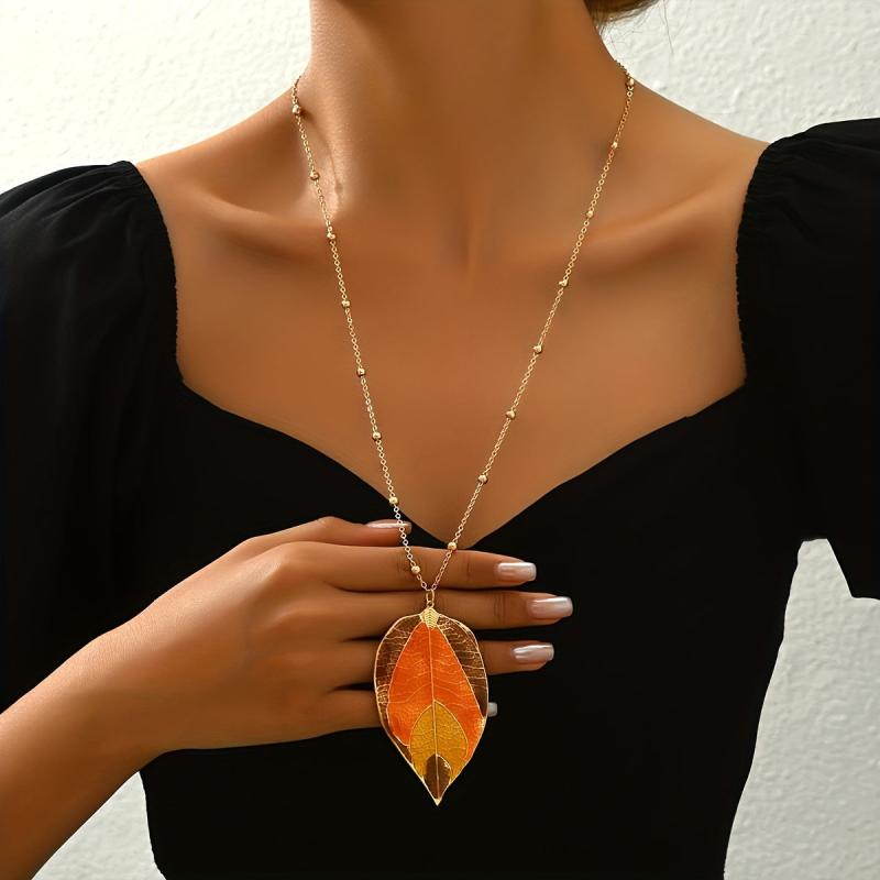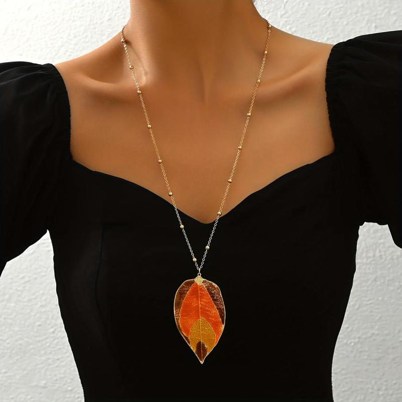 Add a touch of rustic charm with this autumn leaf pendant necklace. The long chain design is fashionable and perfect for all seasons, suitable for daily wear or parties.