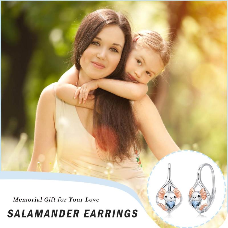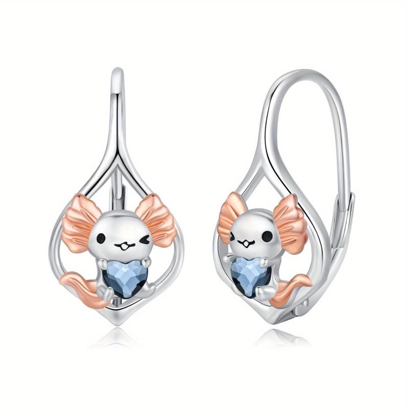Add a touch of charm to your look with these delightful axolotl earrings. Made of 925 sterling silver with heart crystal accents, these leverback earrings are perfect for any woman who loves unique jewelry.