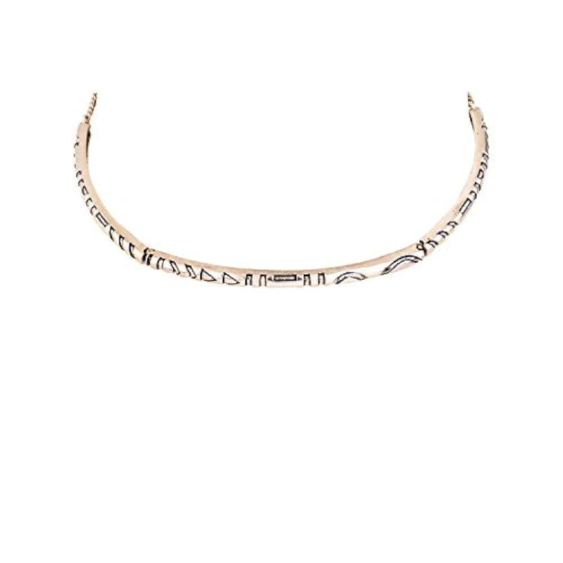 Make a bold statement with this Aztec-inspired choker necklace featuring intricate bar design.