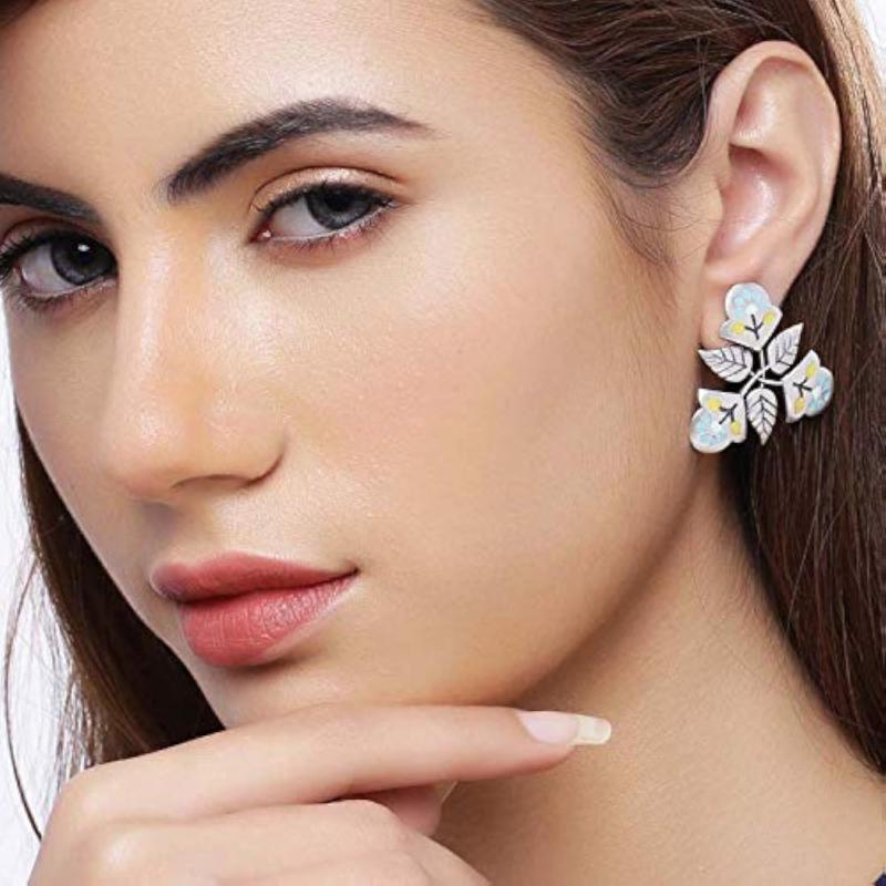 These elegant earrings feature intricate floral motifs inspired by the beauty of Bagh E Fiza.