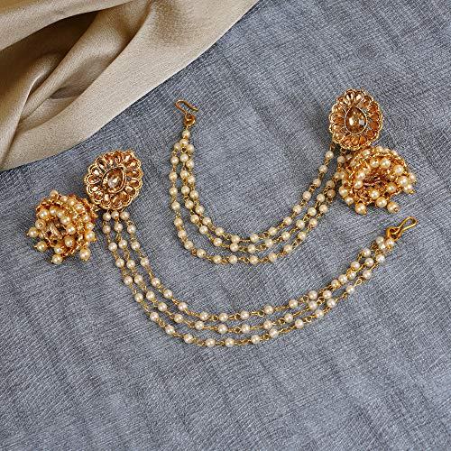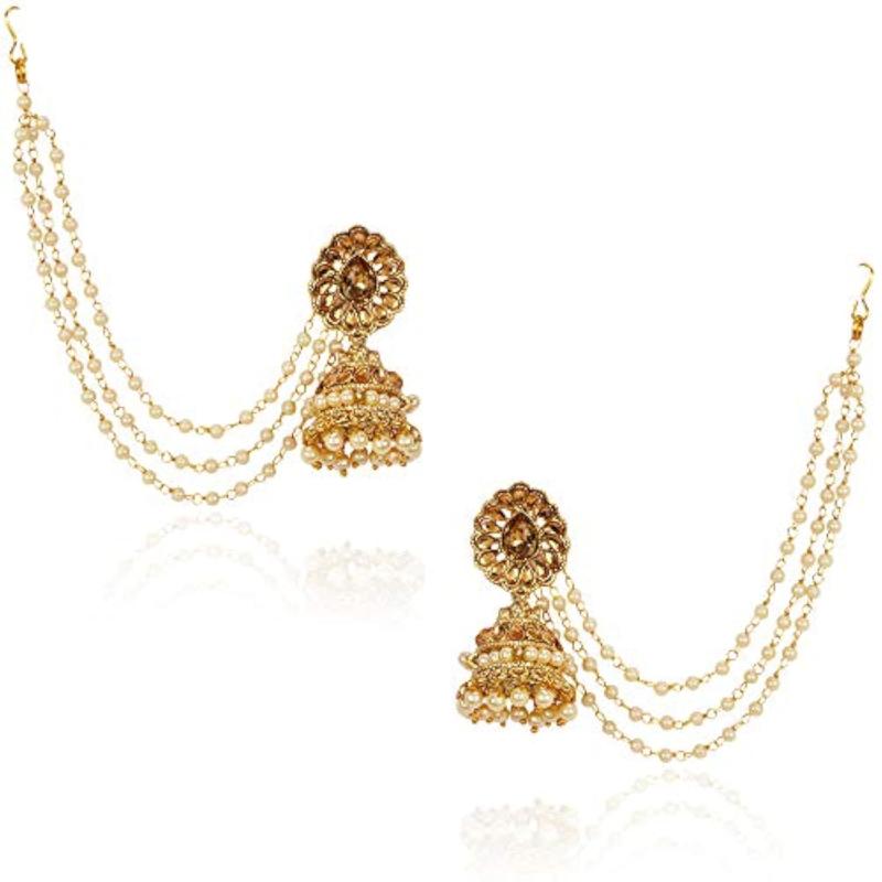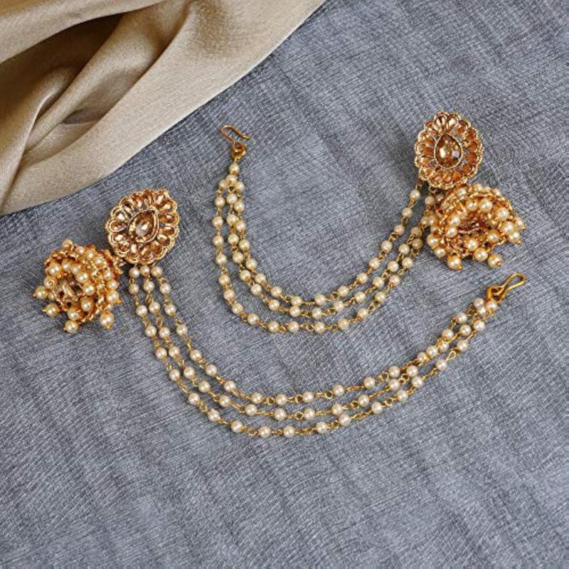Elegant and stylish traditional jhumki earrings featuring pearl chain design.