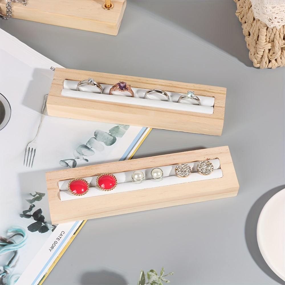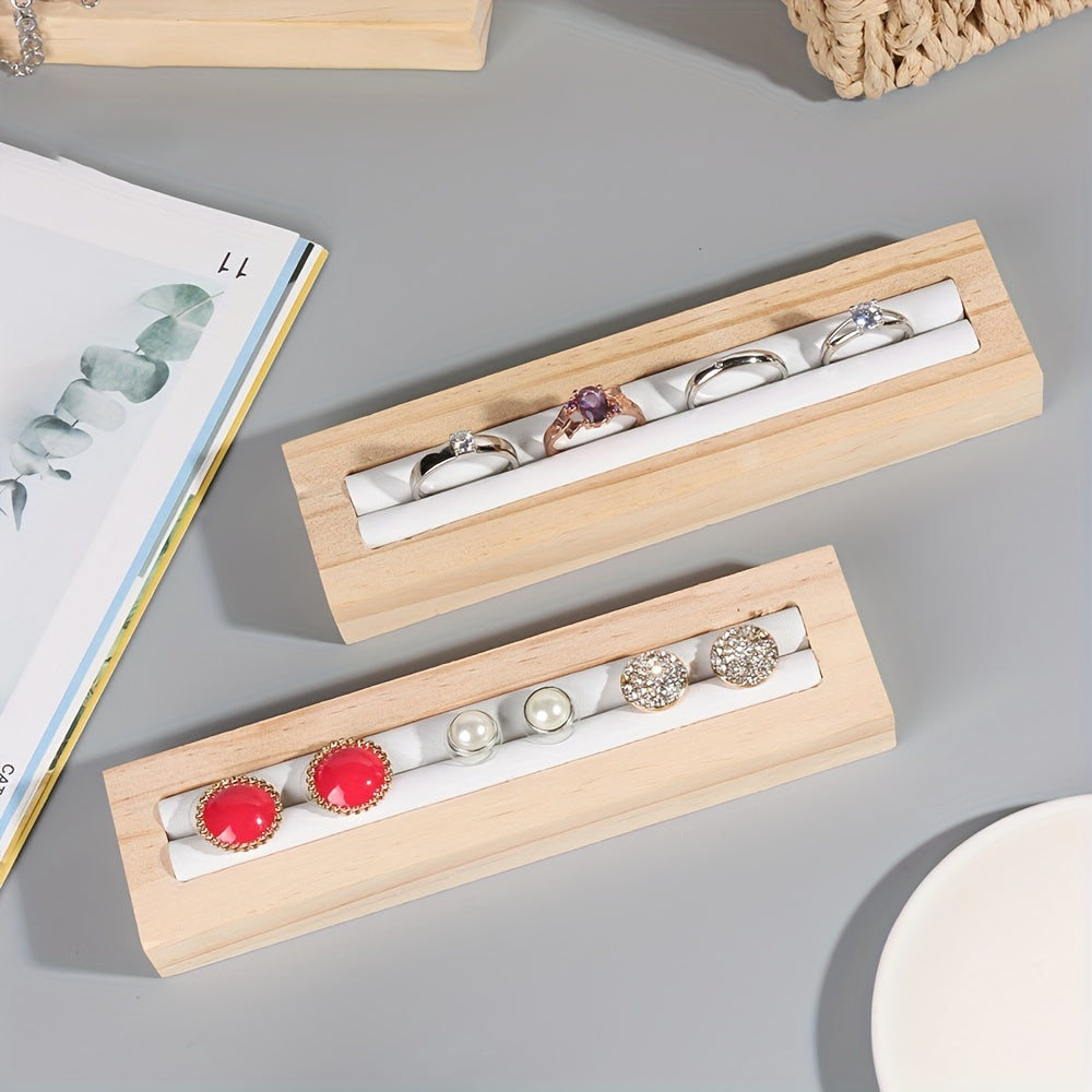 Keep your earrings organized and displayed with this elegant bamboo and wood rectangular tray. Perfect for storing and showcasing your favorite earrings.