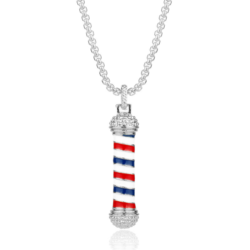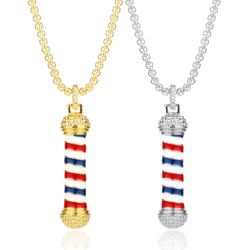 Add a touch of funkiness to your outfit with this 3D barber shop pole pendant necklace designed for men.