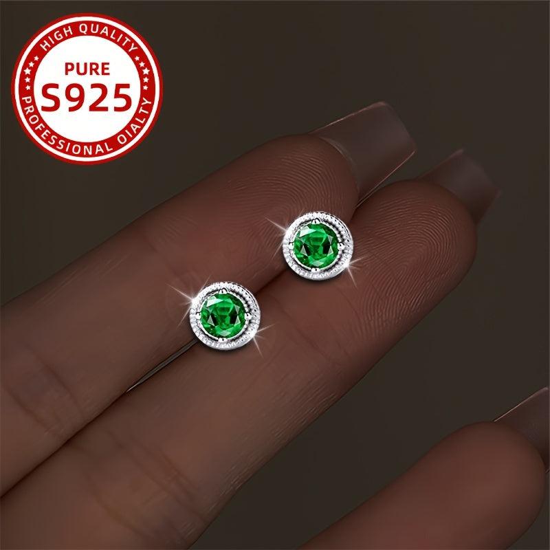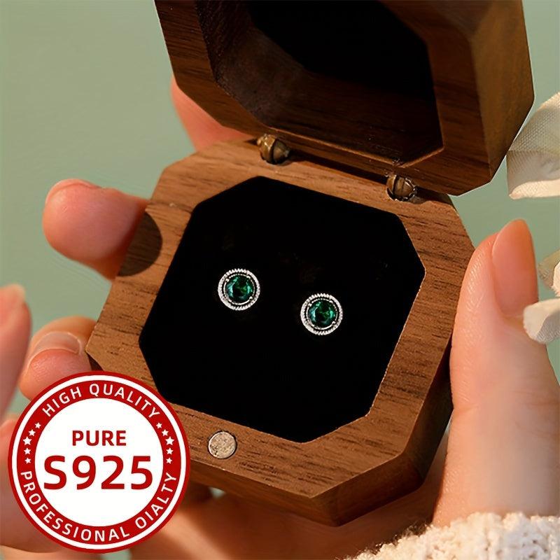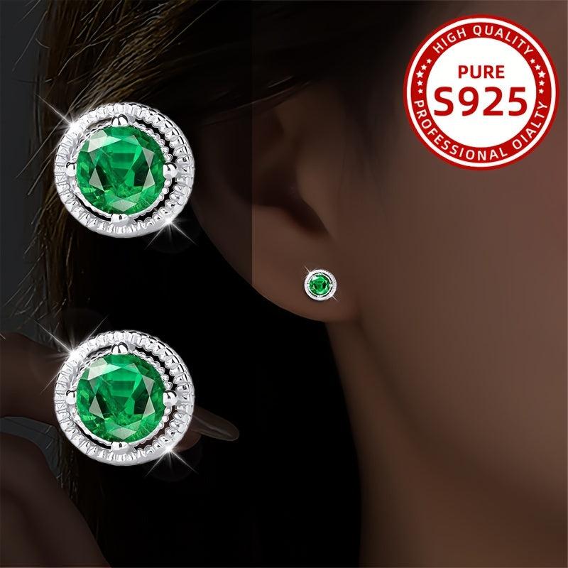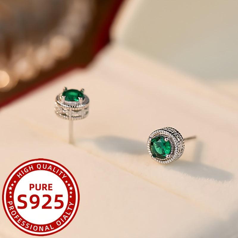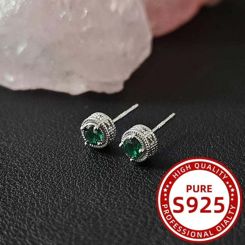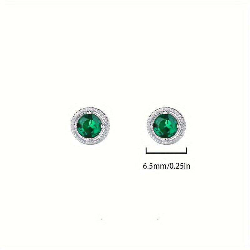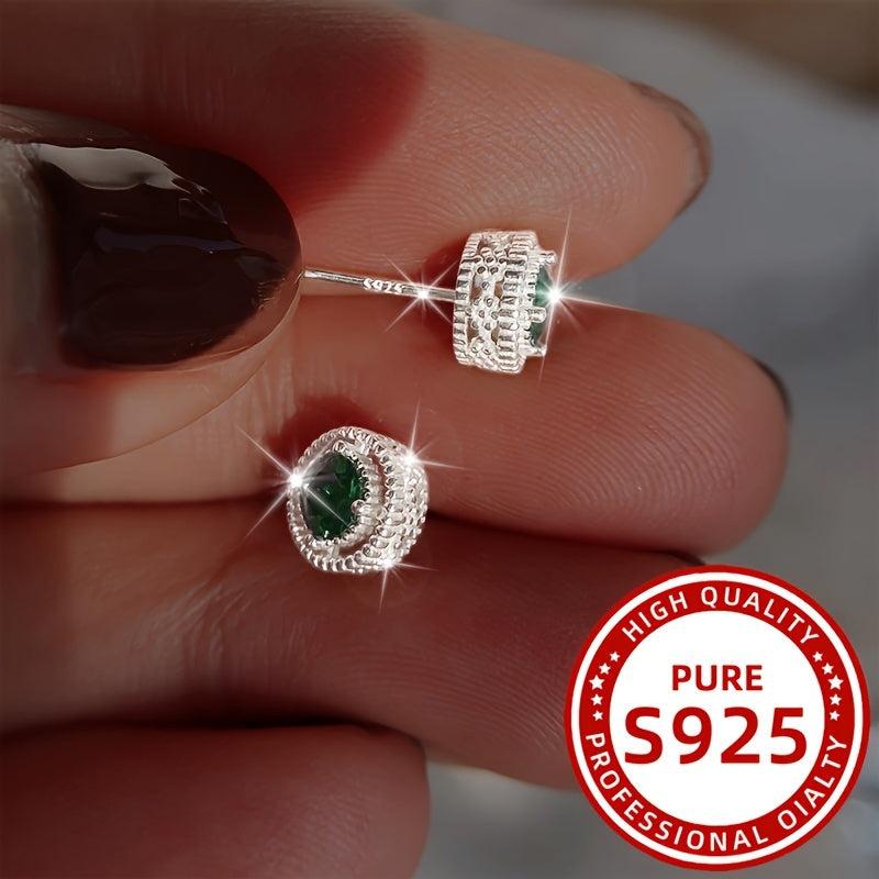 These elegant earrings are crafted in a French style with round baroque carved green design. Made from 925 silver and inlaid with synthetic zirconia, they are perfect for daily wear or special occasions.