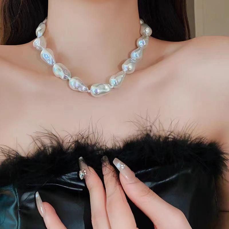 Elevate your style with this irregular Baroque necklace, a high-end sweater chain perfect for adding a touch of sophistication to any outfit.