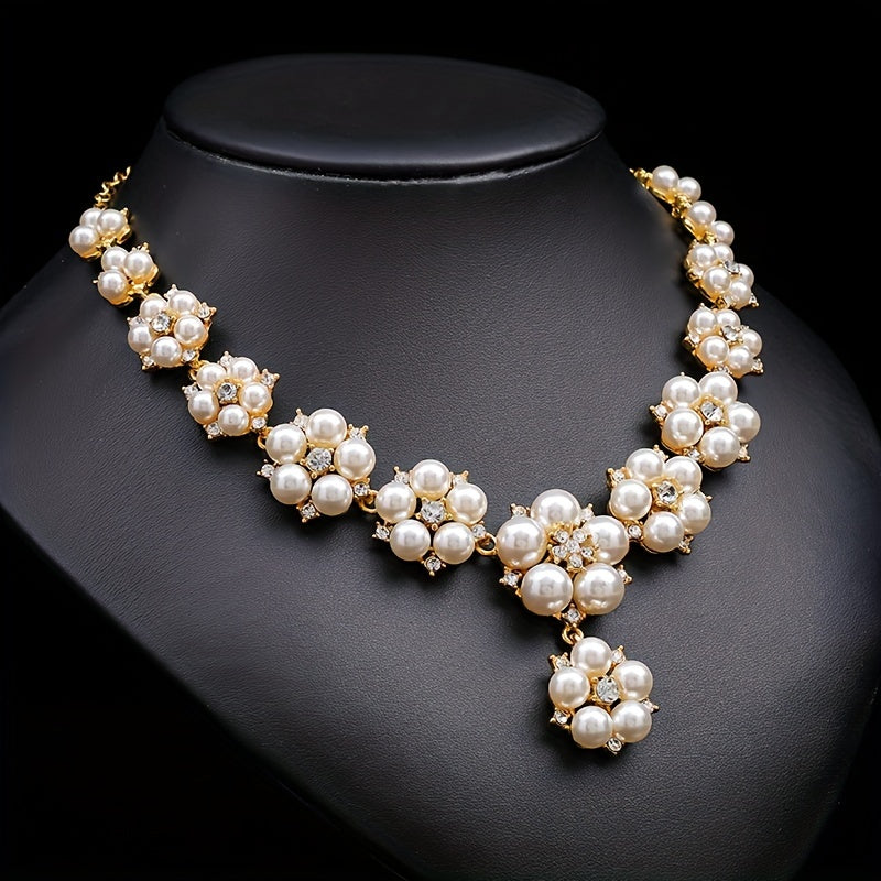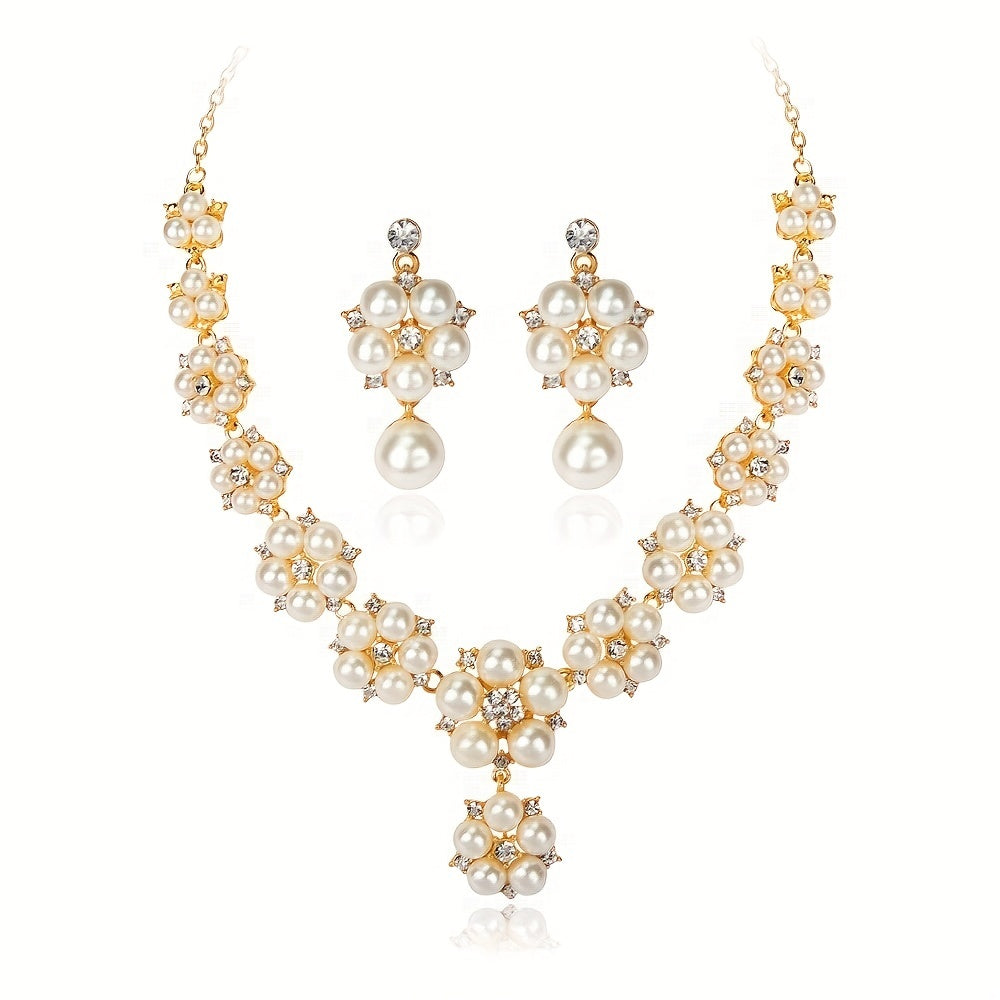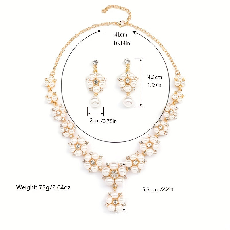 Add a touch of retro elegance to your outfit with this baroque style faux pearl necklace and earrings set. Perfect for brides, banquets, and special occasions. Made with high-quality 18K gold plating.