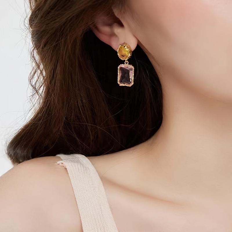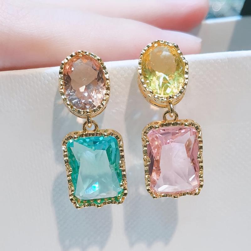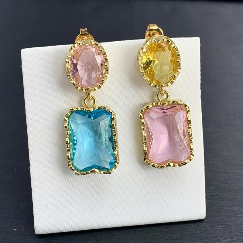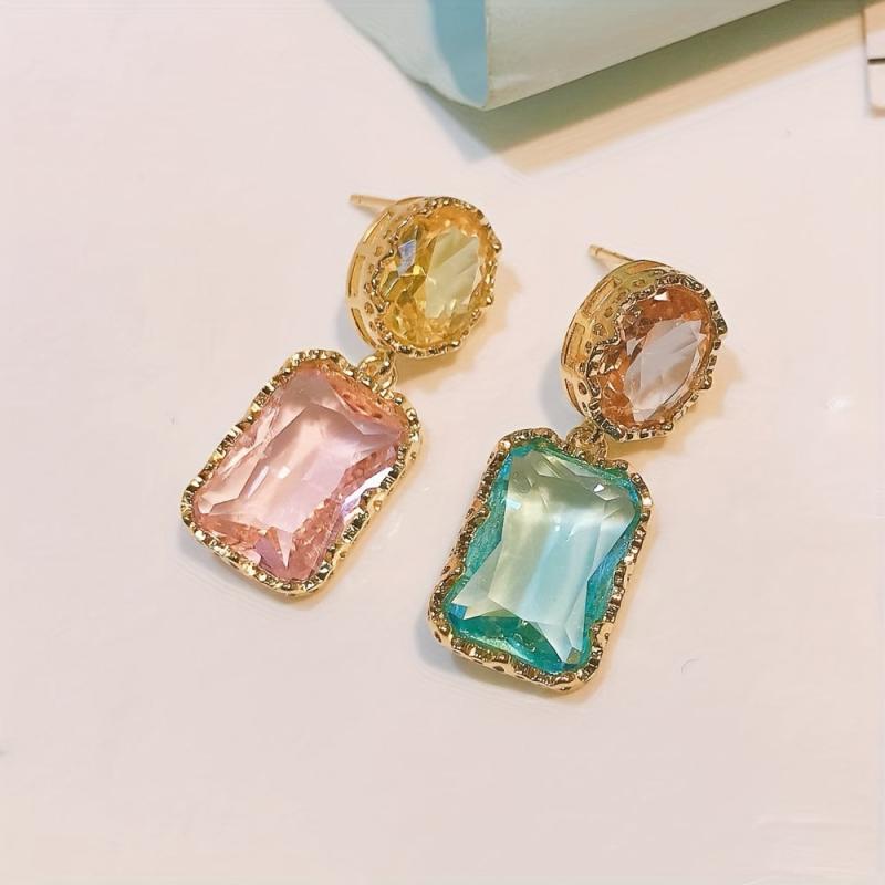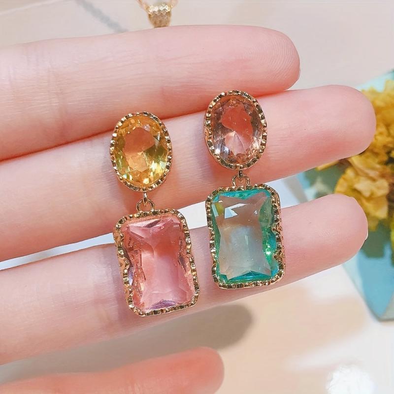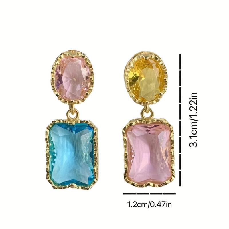 These asymmetrical earrings feature colorful artificial crystals in a fashionable and charming design. Perfect accessory for Christmas or any special occasion.