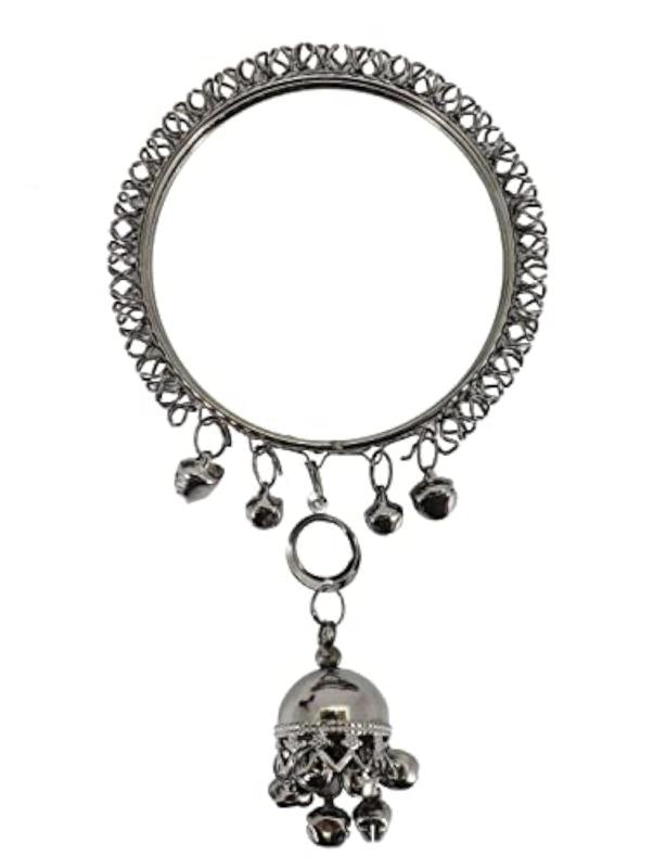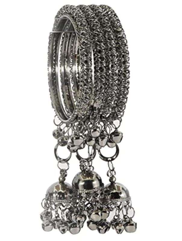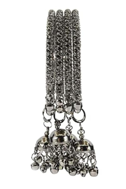 Non-Precious Metal Base Metal Kada Set featuring a curved shape design with Ghungroo Latkan. This set includes 4 Kadas with a diameter of 2.2 inches.