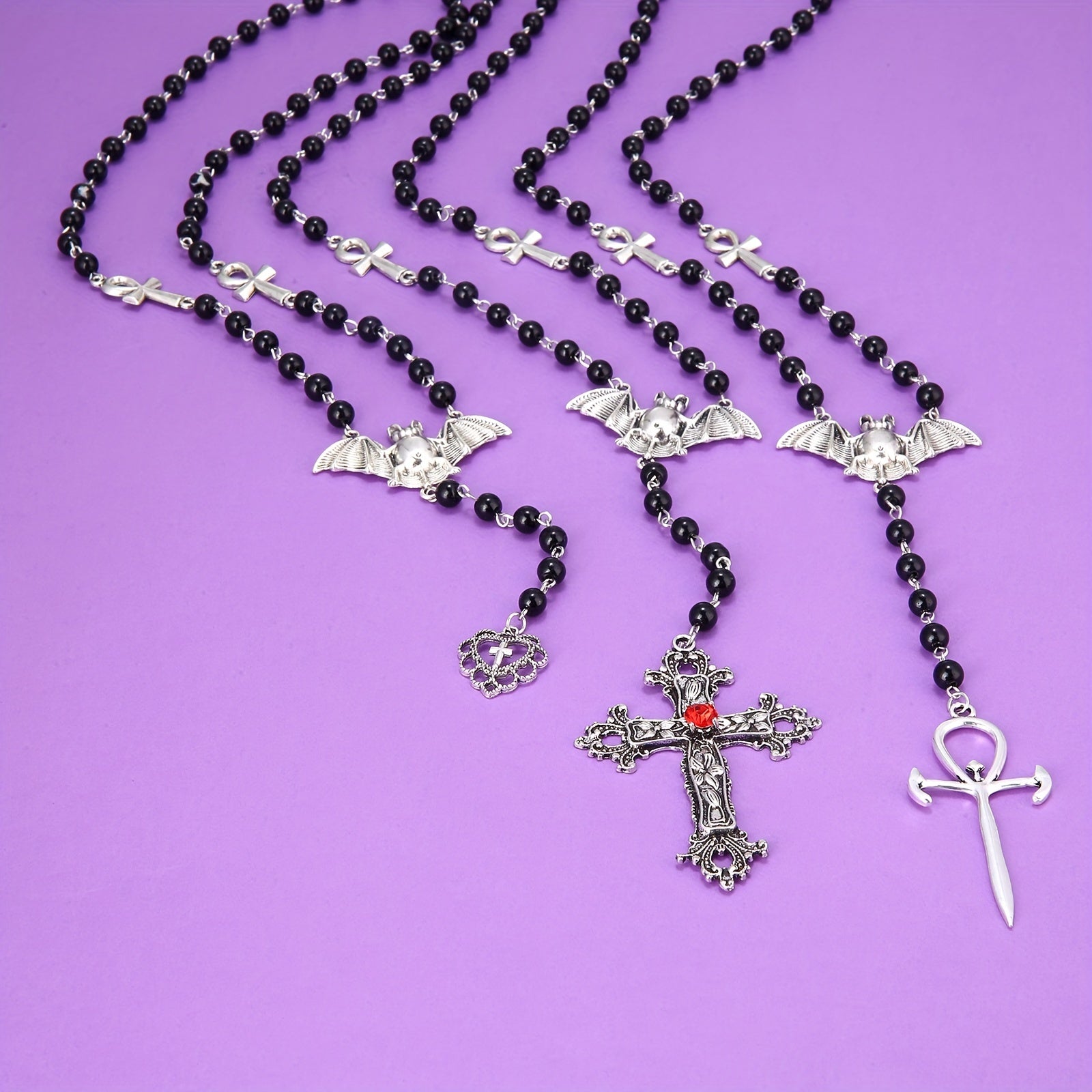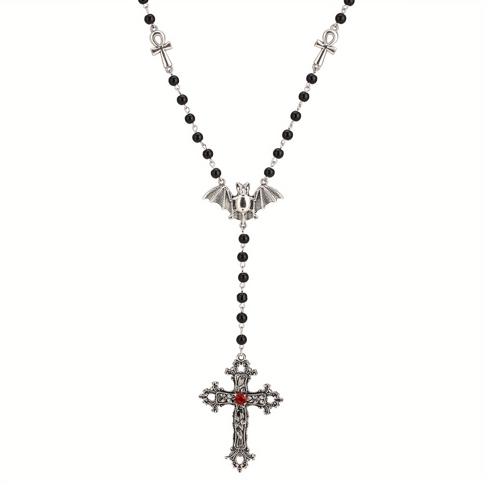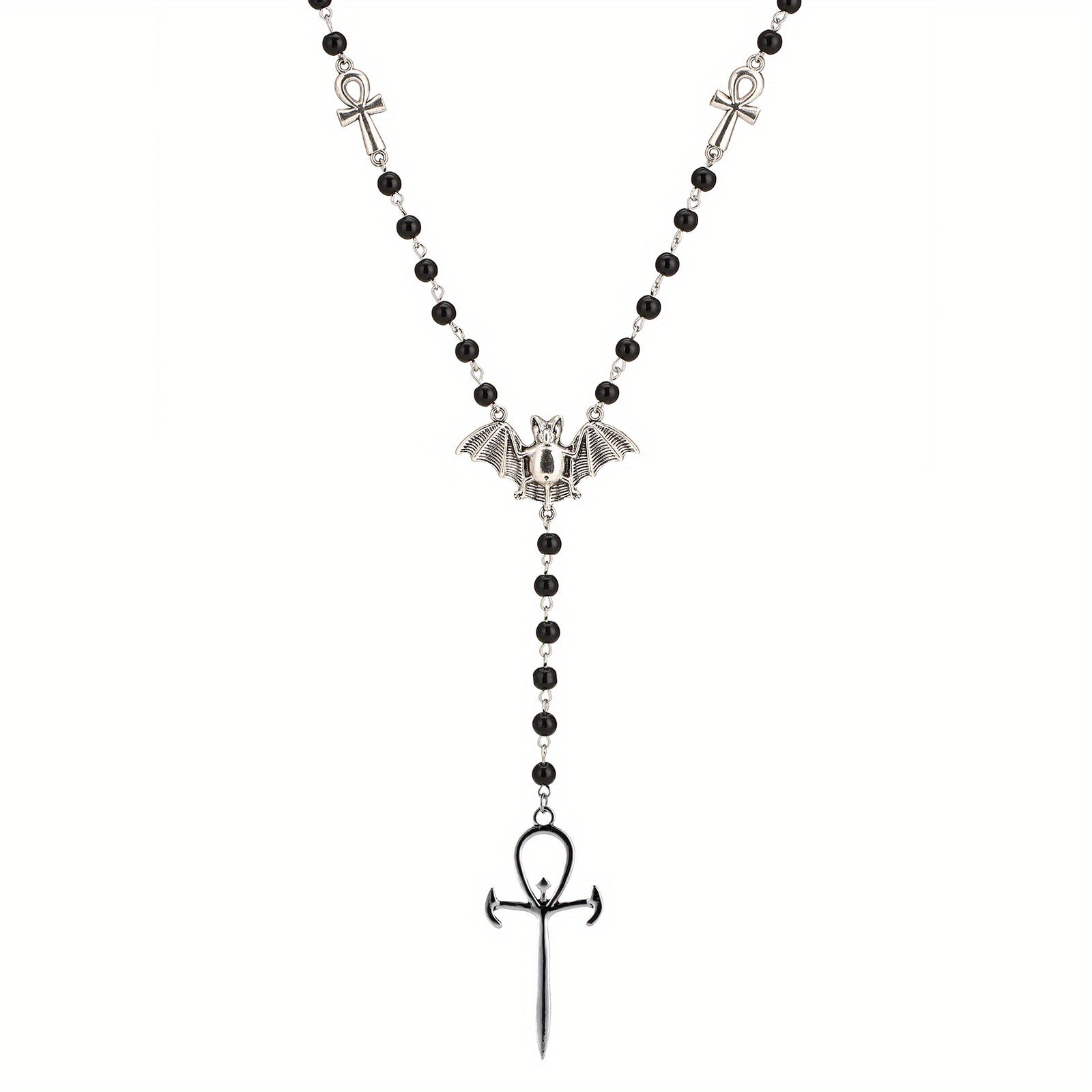 This beautiful bat necklace features natural glass beads and a cross pendant with a hollowed out love design. Perfect as a gift for yourself or a loved one.