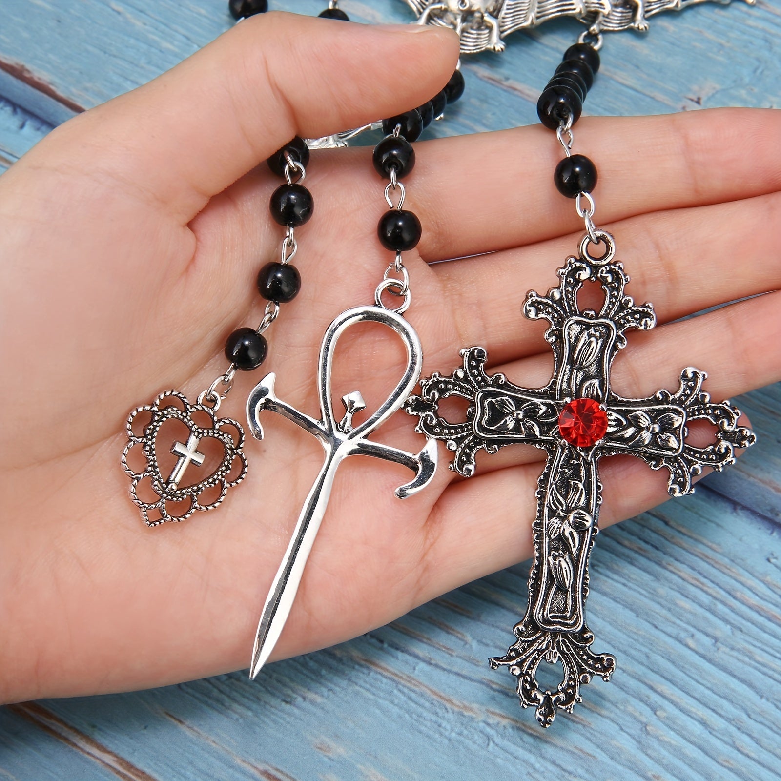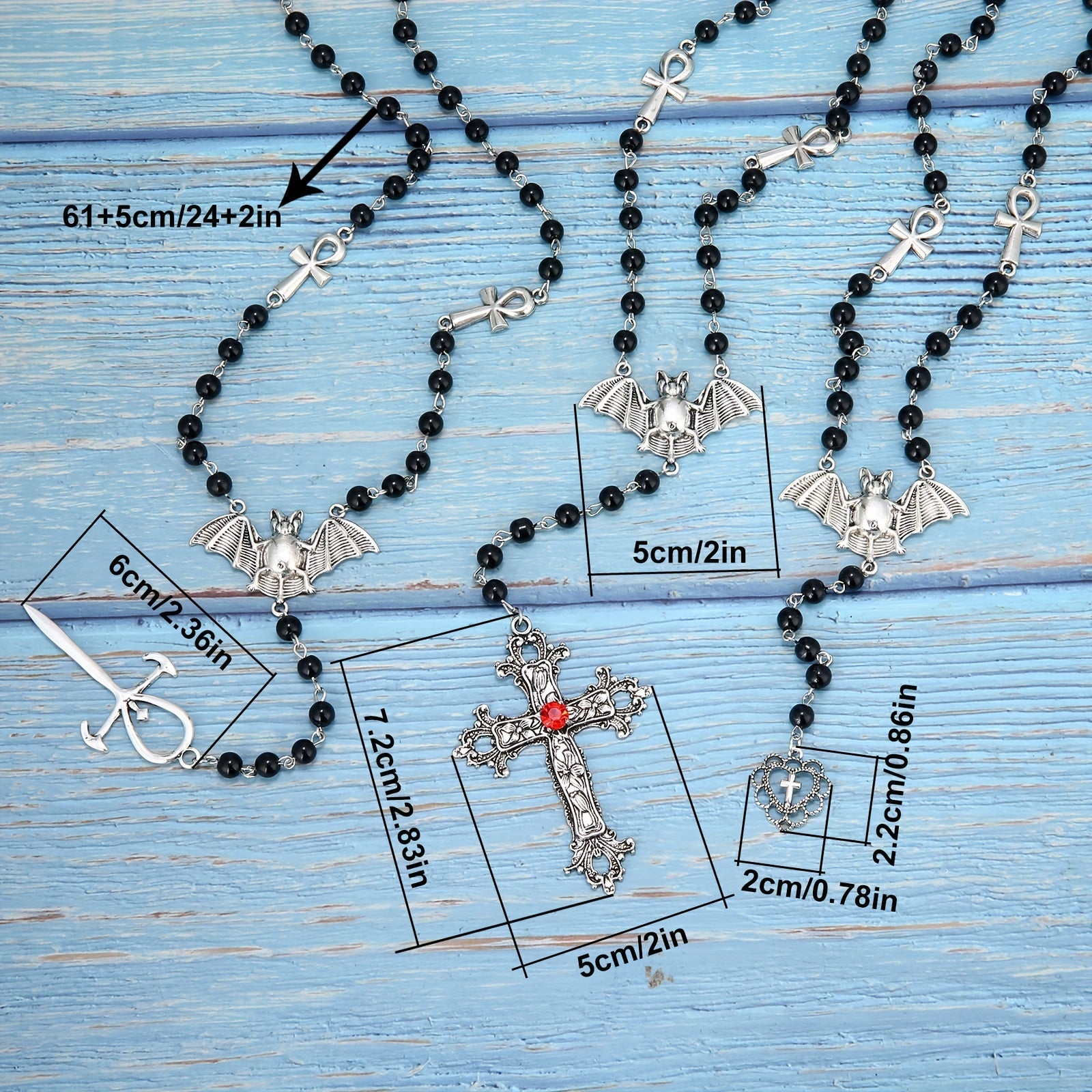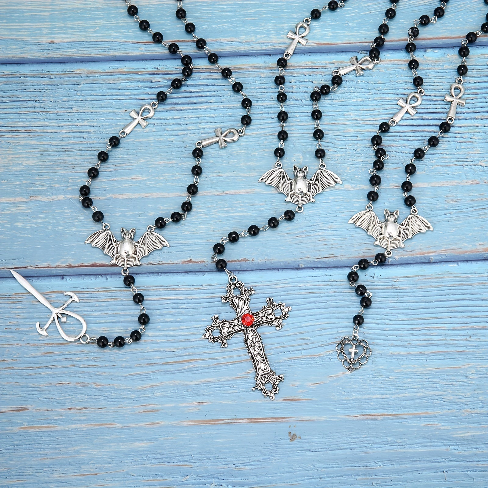 This beautiful bat necklace features natural glass beads and a cross pendant with a hollowed out love design. Perfect as a gift for yourself or a loved one.