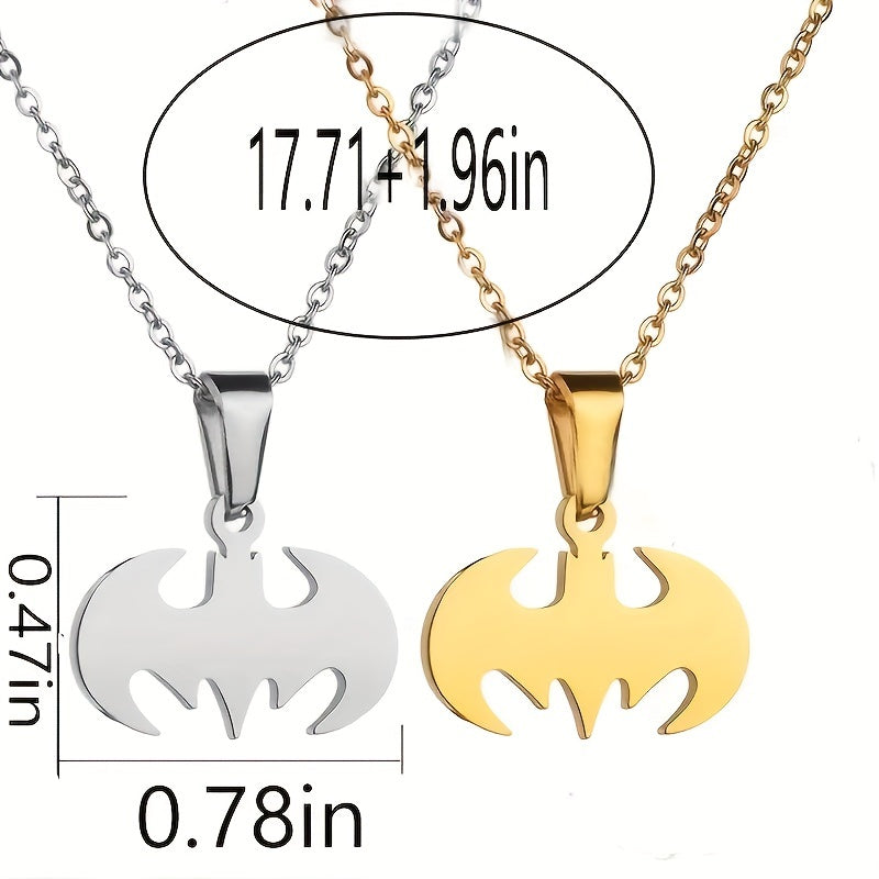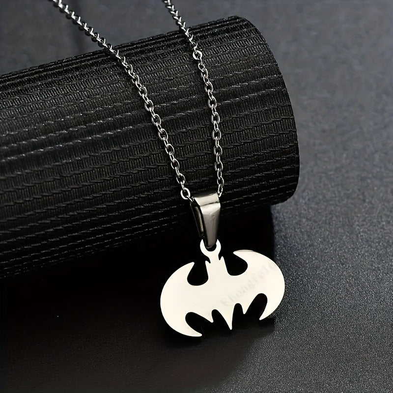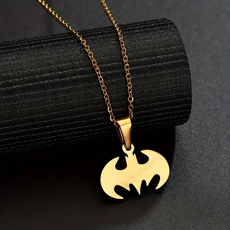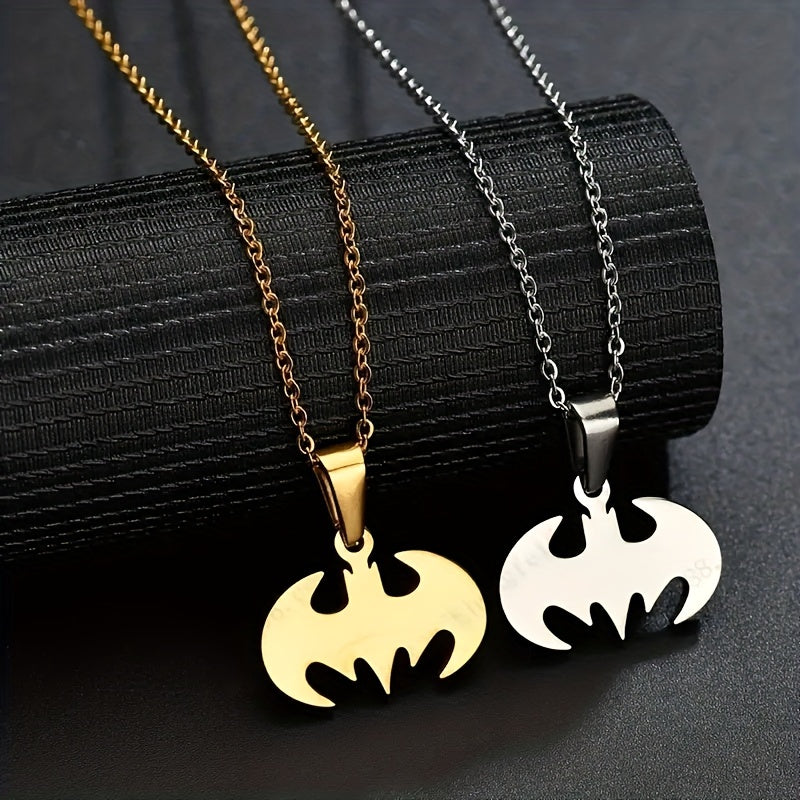 This creative bat pendant necklace is made of glossy stainless steel, perfect for men's jewelry collection.
