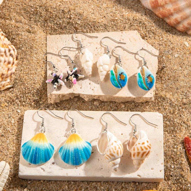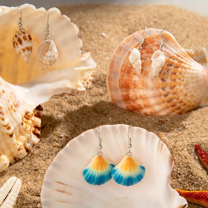 Elevate your beach vacation or dance party look with these fashionable earrings featuring starfish and conch elements. Stand out with these unique pieces that embody the essence of the sea.