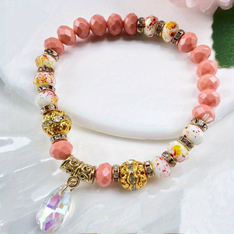 This bracelet features a beautiful mix of beads, crystals, and elements, perfect for adding a stylish touch to your outfit.