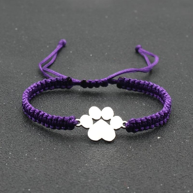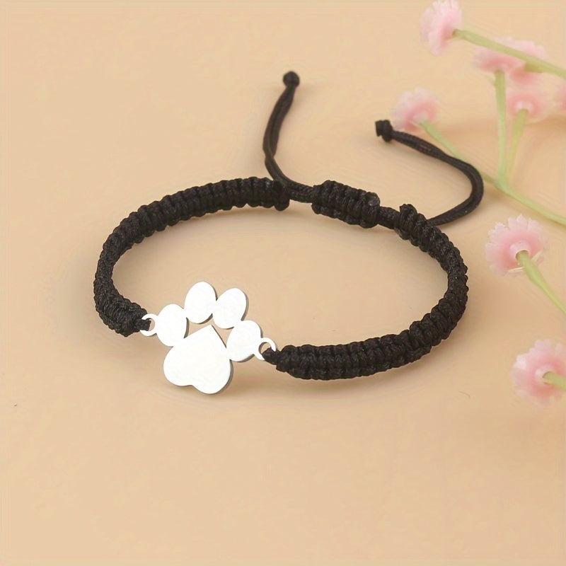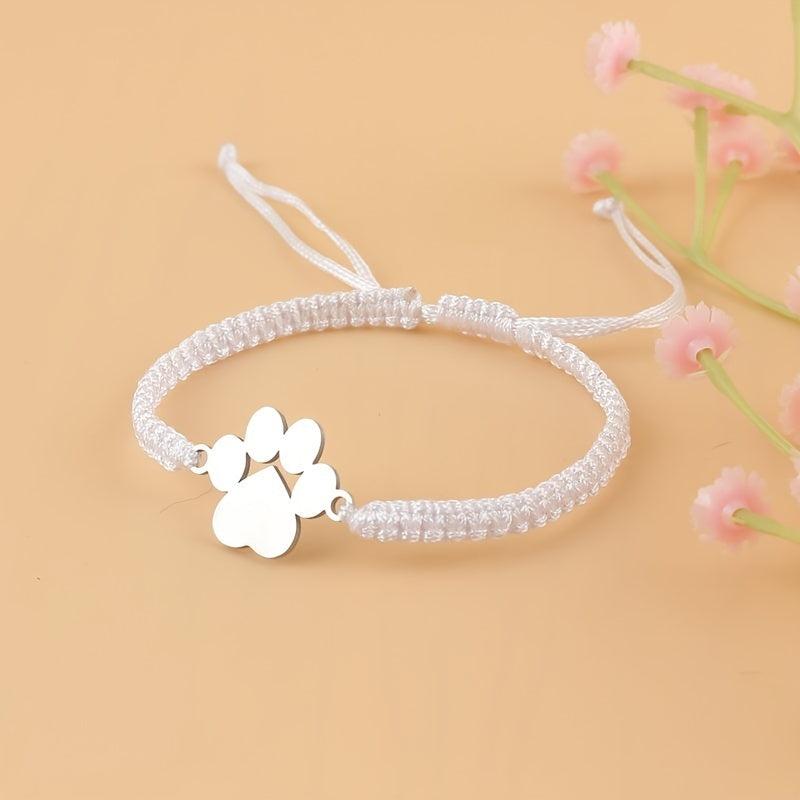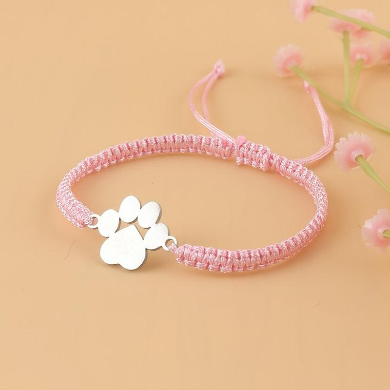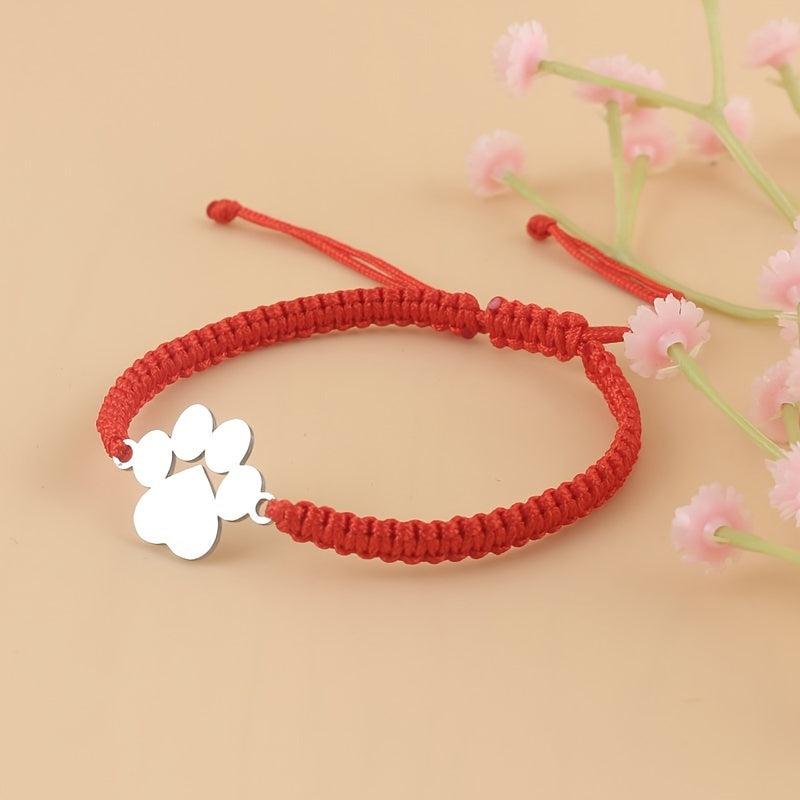 This charming bracelet features a stainless steel dog paw charm on a red cord with braided detailing. It's the perfect gift for any animal lover, especially mothers who adore their furry friends.