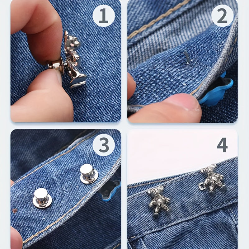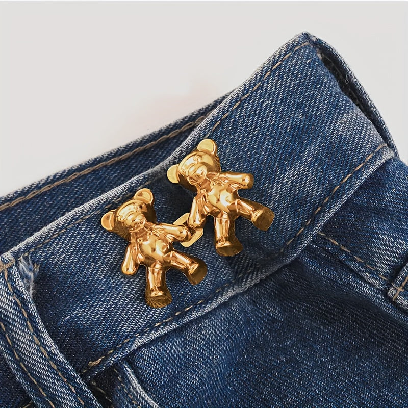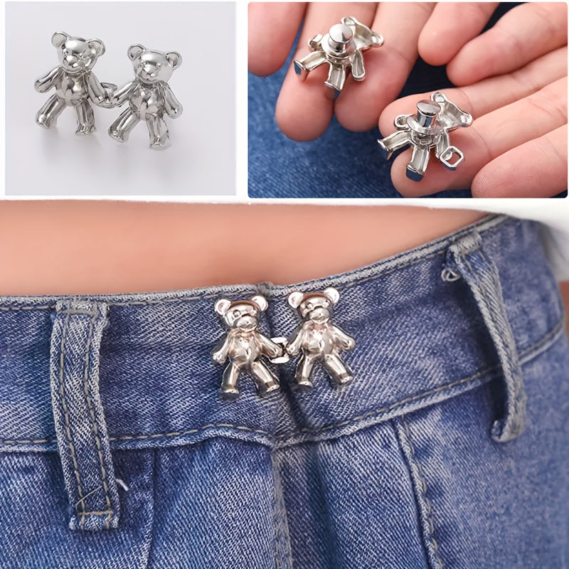 This bear waist buckle extender is a convenient solution to adjust the waist of your pants without sewing. It features a detachable design and is made of metal for durability.