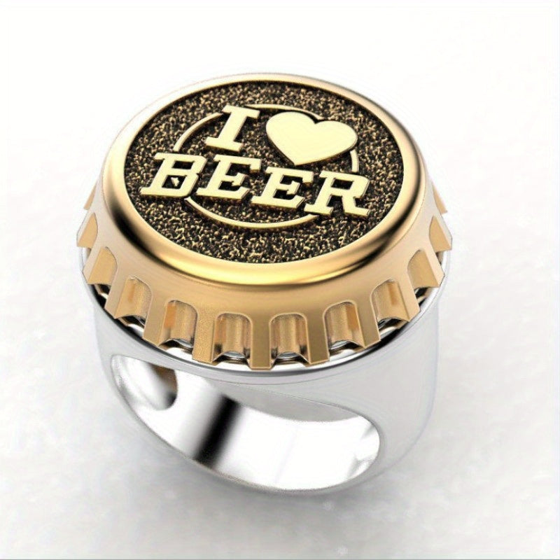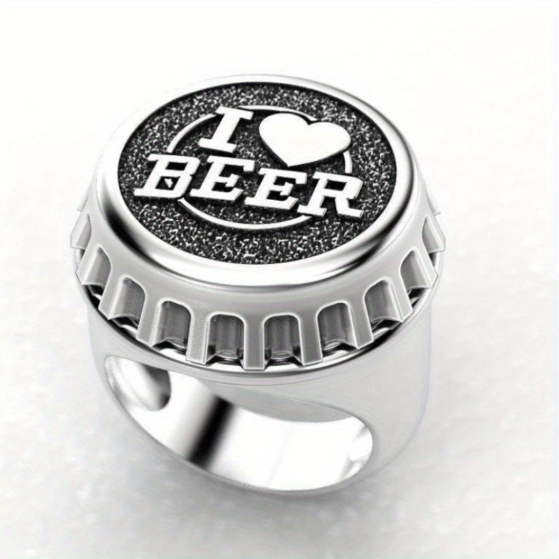 Show your love for beer with this unique beer bottle cap ring. Perfect for beer enthusiasts and makes a great conversation starter.