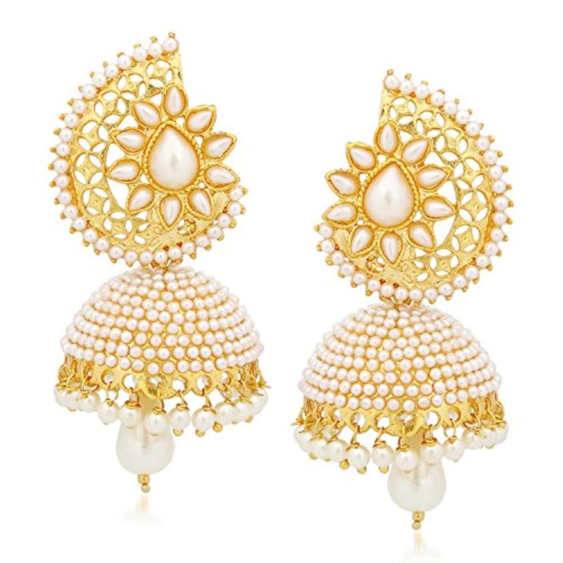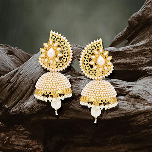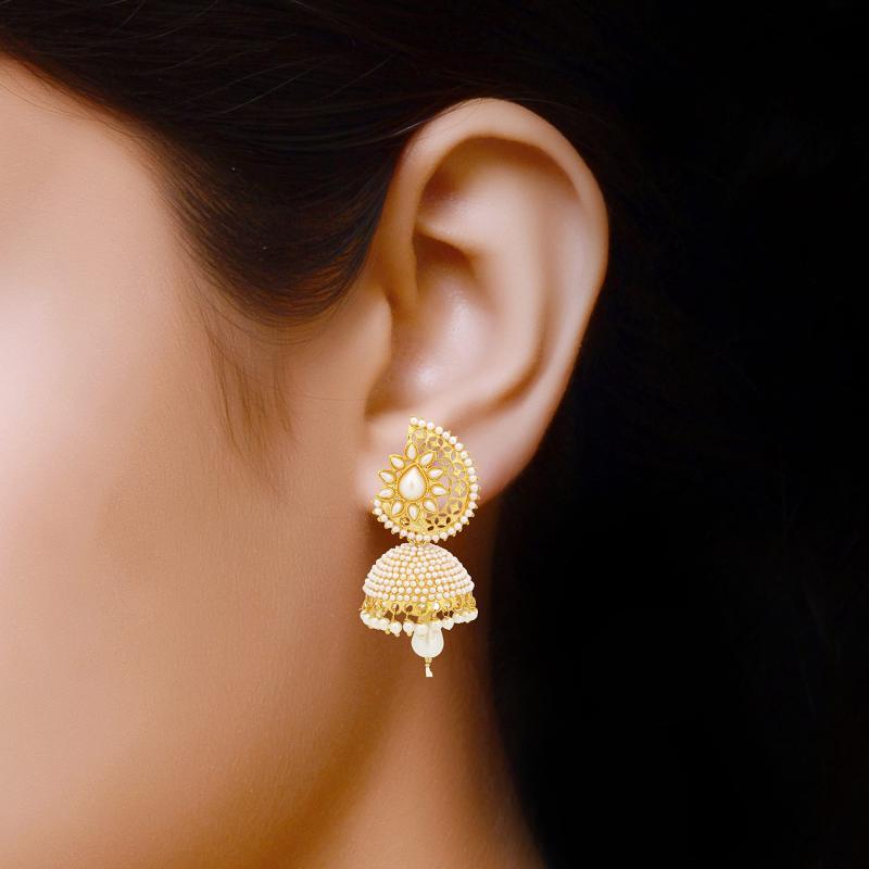 These stunning jhumka earrings are crafted with intricate details and feature a traditional design. Perfect for weddings, parties, and special occasions.