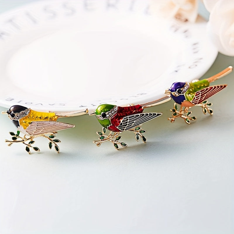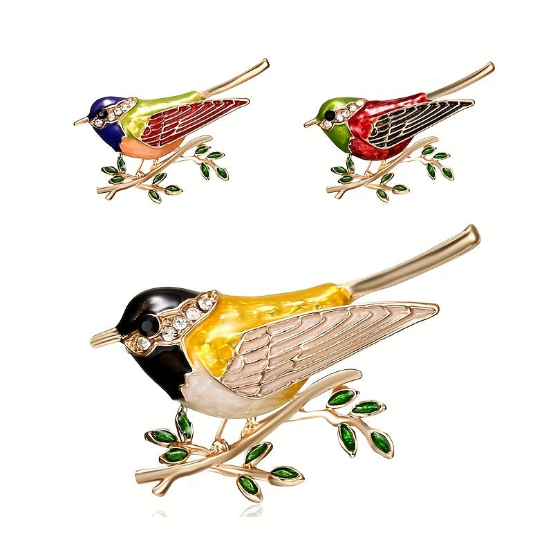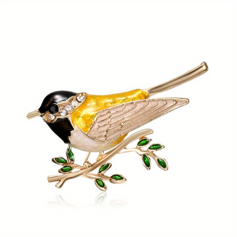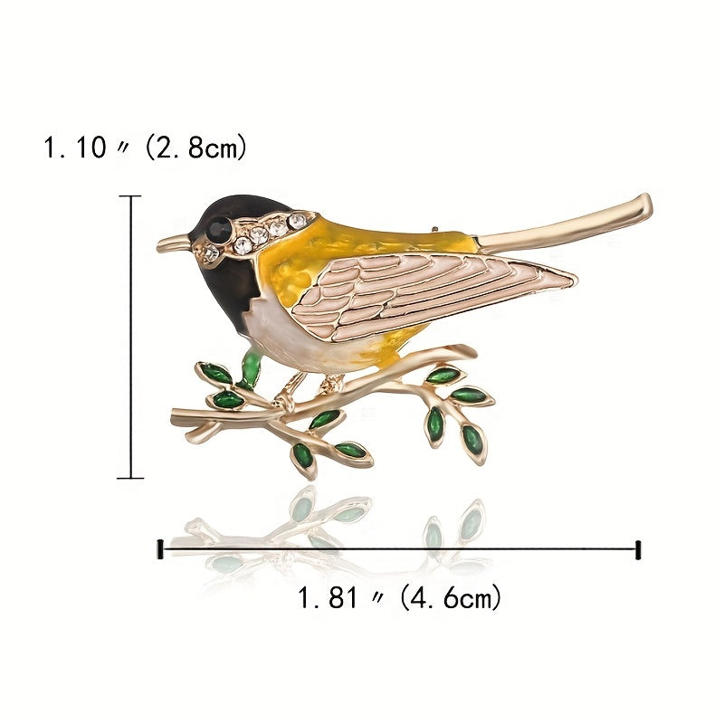 This charming bird-shaped brooch is a perfect accessory for both men and women. Featuring rhinestone detailing, this brooch adds a touch of elegance to any outfit.