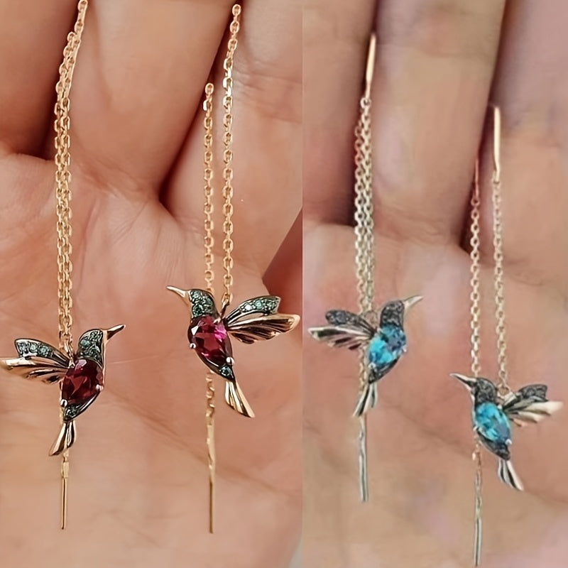 Enhance your style with these bird-shaped earrings featuring zircon inlays. Perfect for parties or weddings. Golden plated for a sophisticated look.