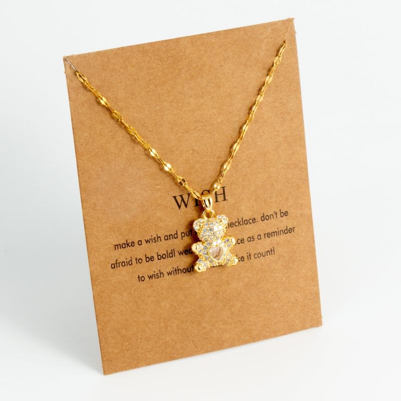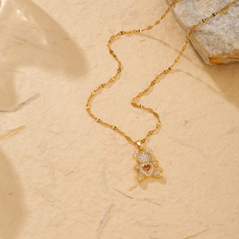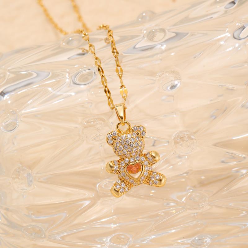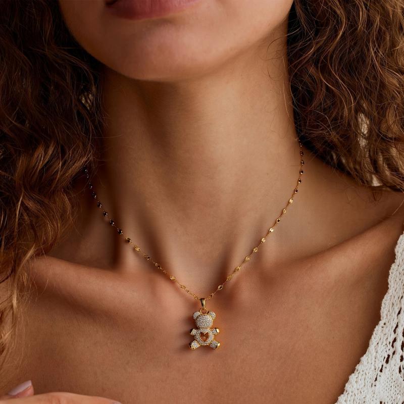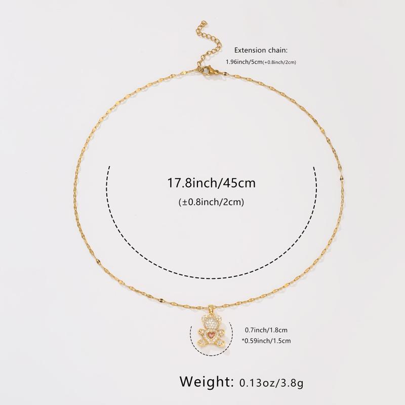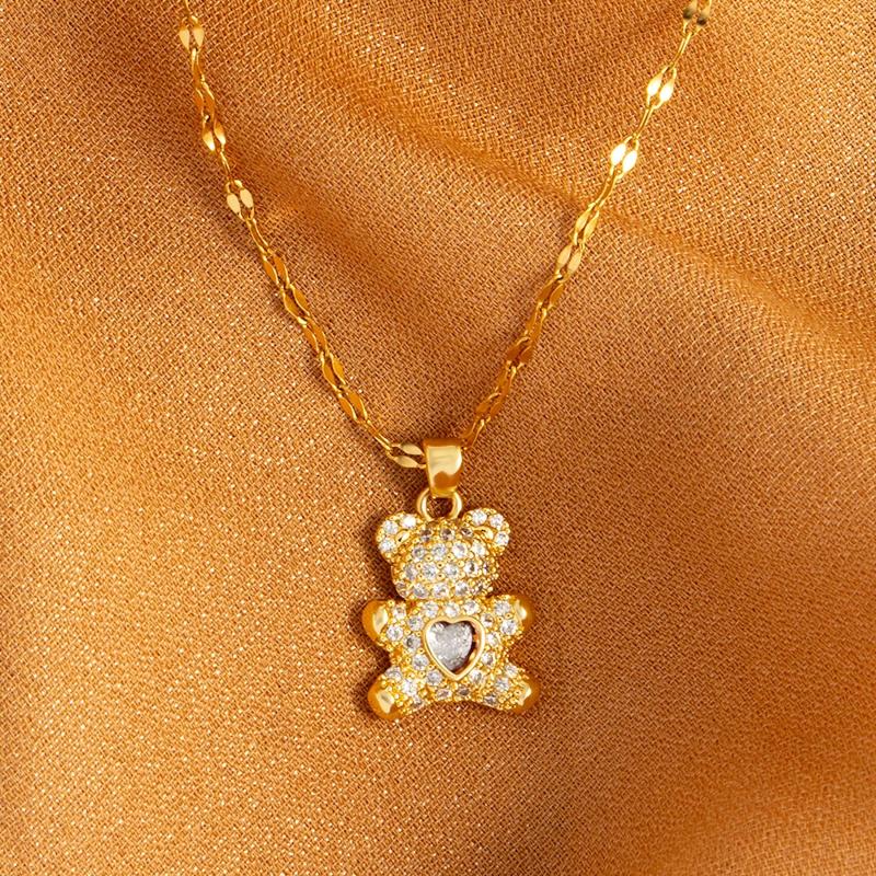 This gorgeous bear pendant necklace features synthetic zirconia inlay on hypoallergenic stainless steel. Perfect for daily wear or as a Christmas gift for parties.