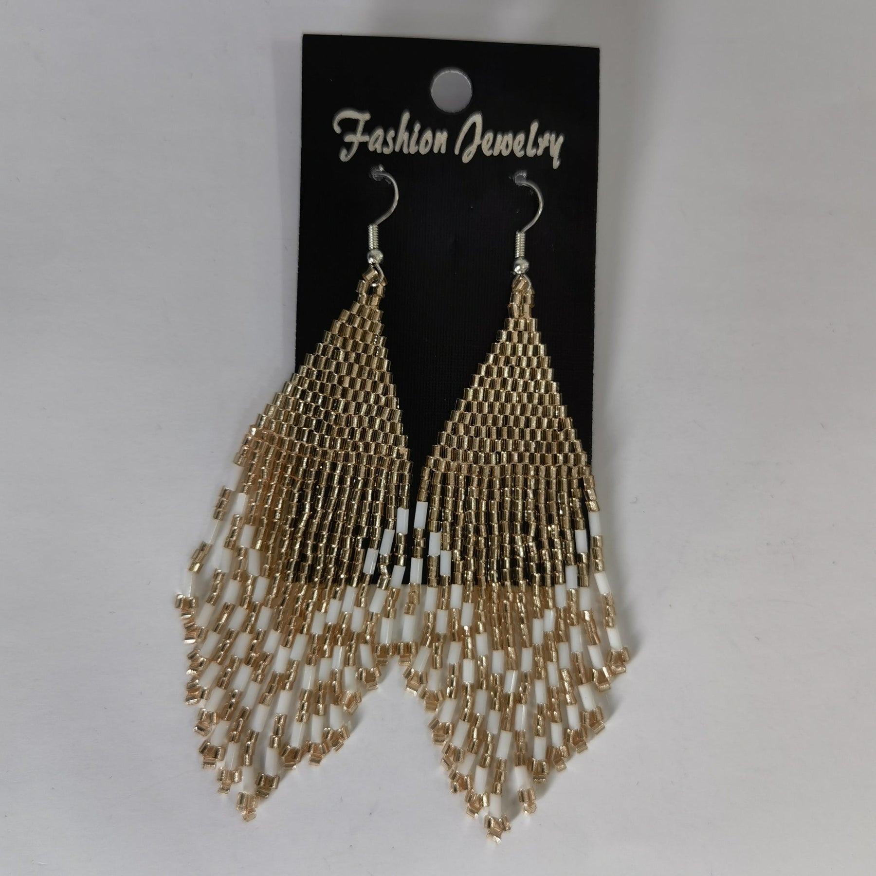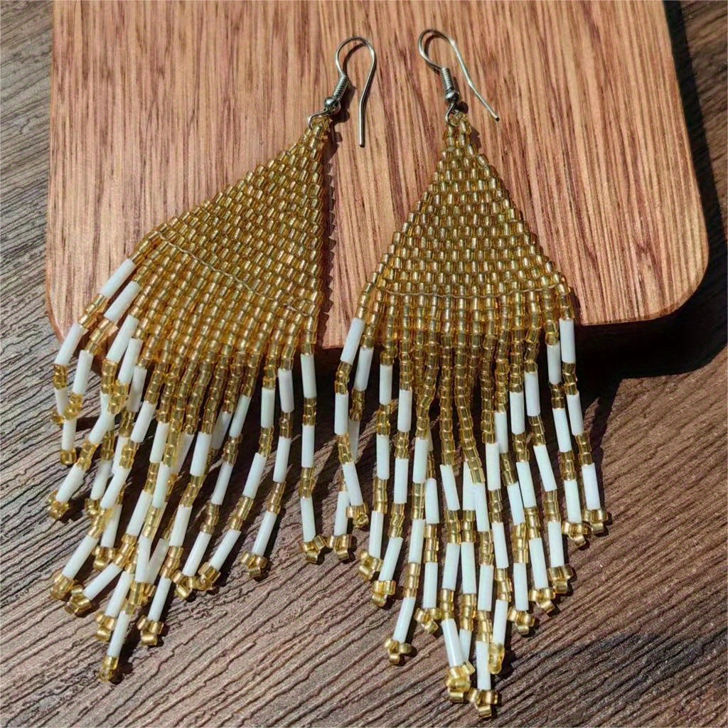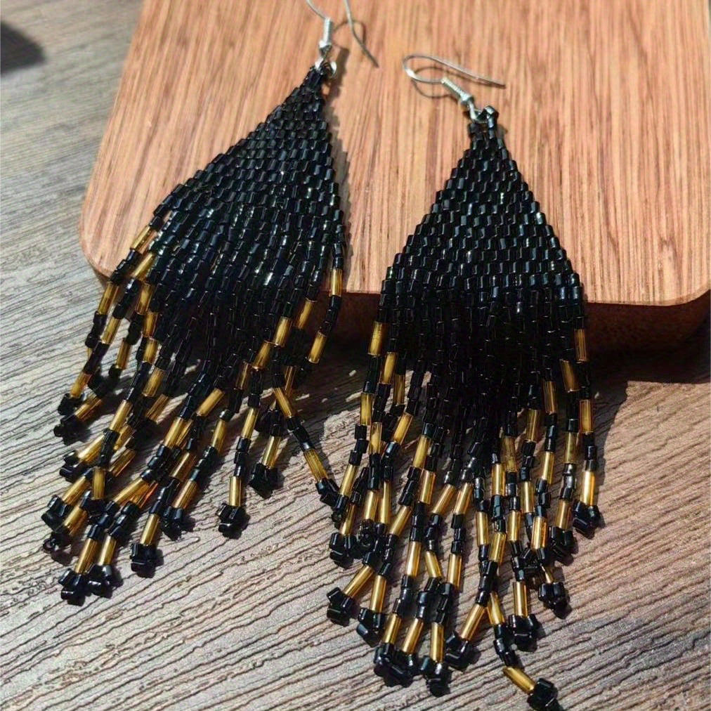 Add a touch of elegant flair with these stunning tassel drop earrings adorned with block beads.