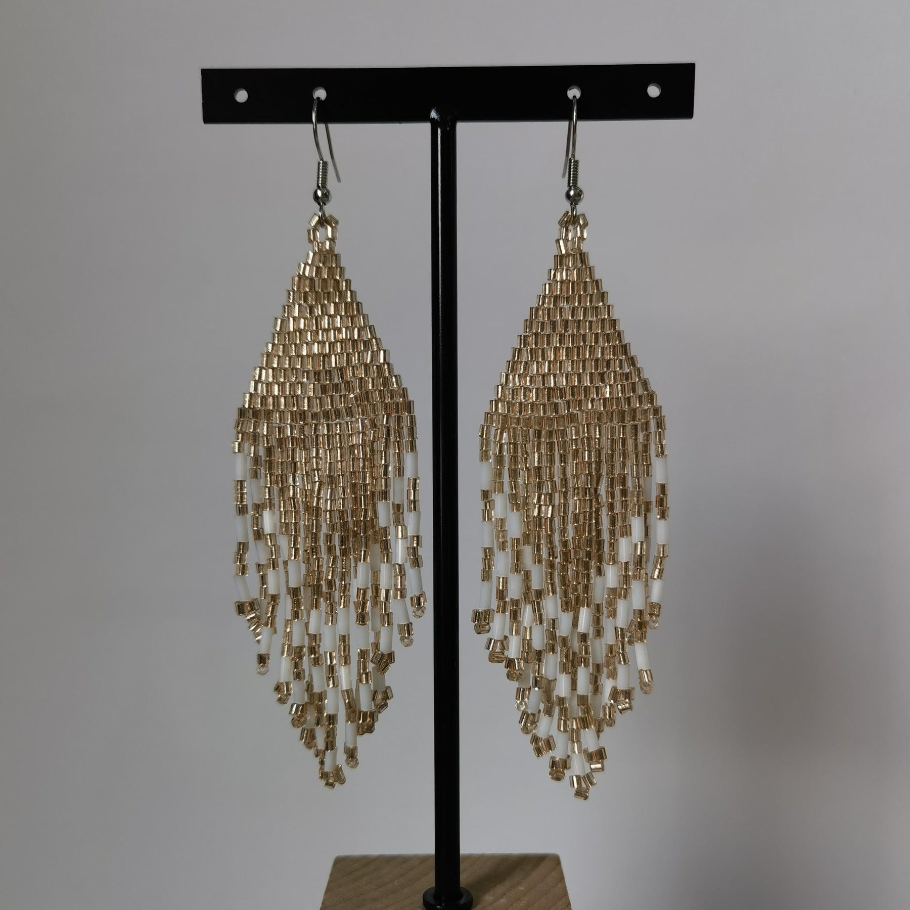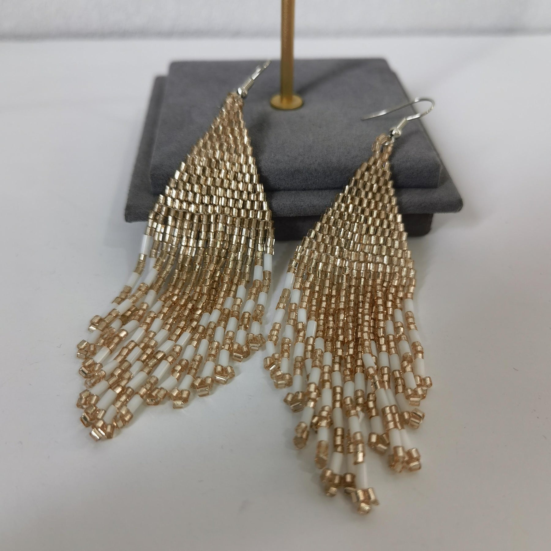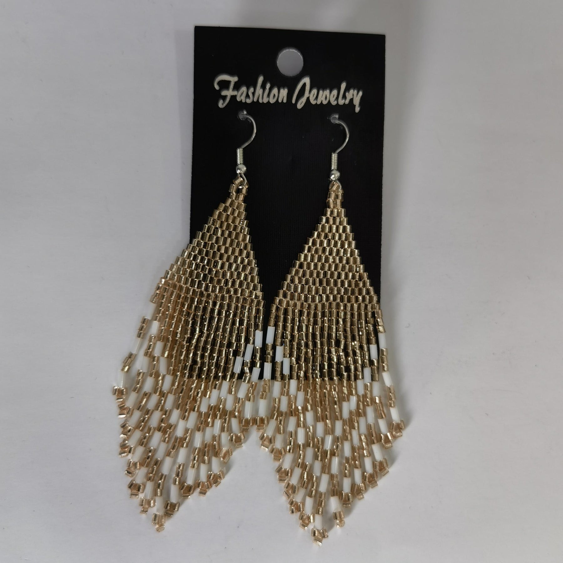Add a touch of elegant flair with these stunning tassel drop earrings adorned with block beads.