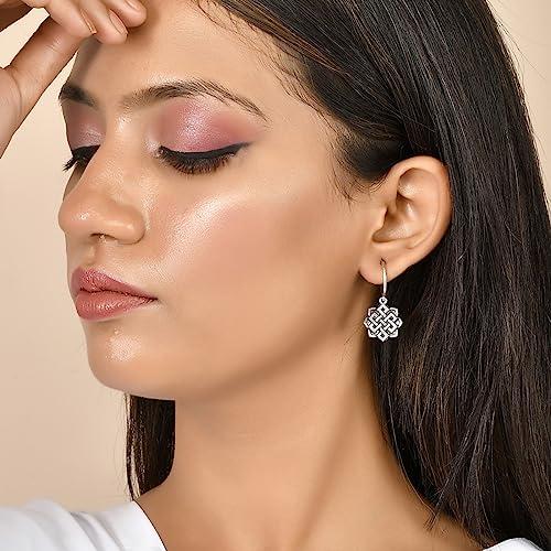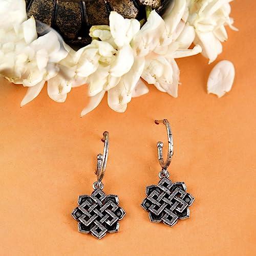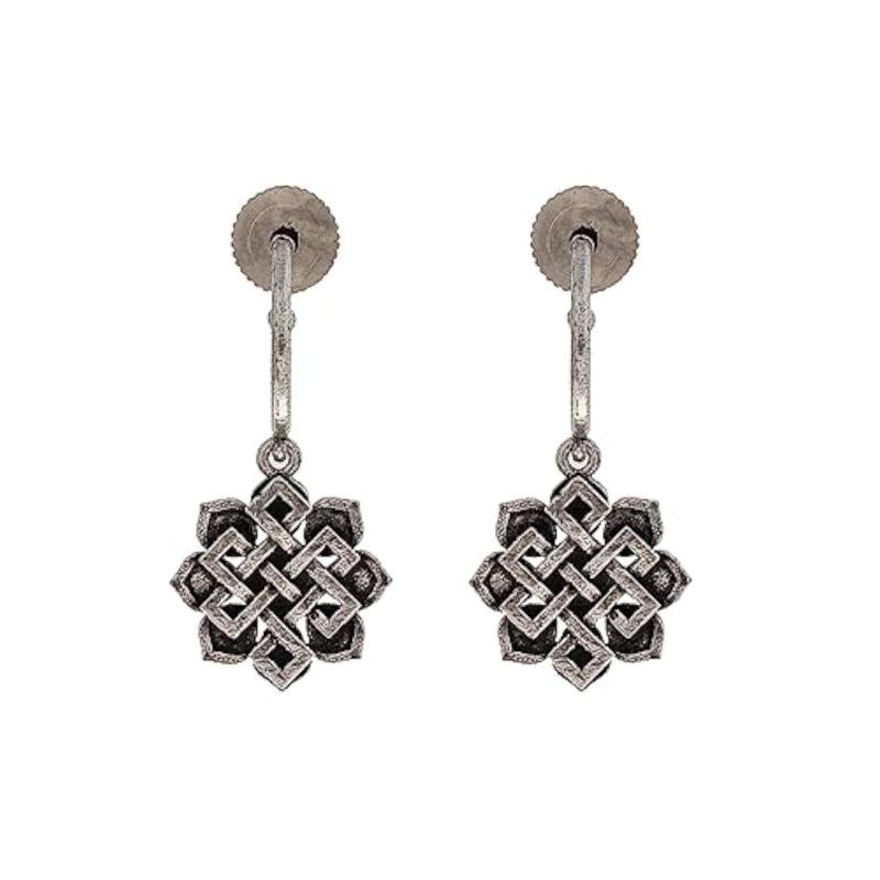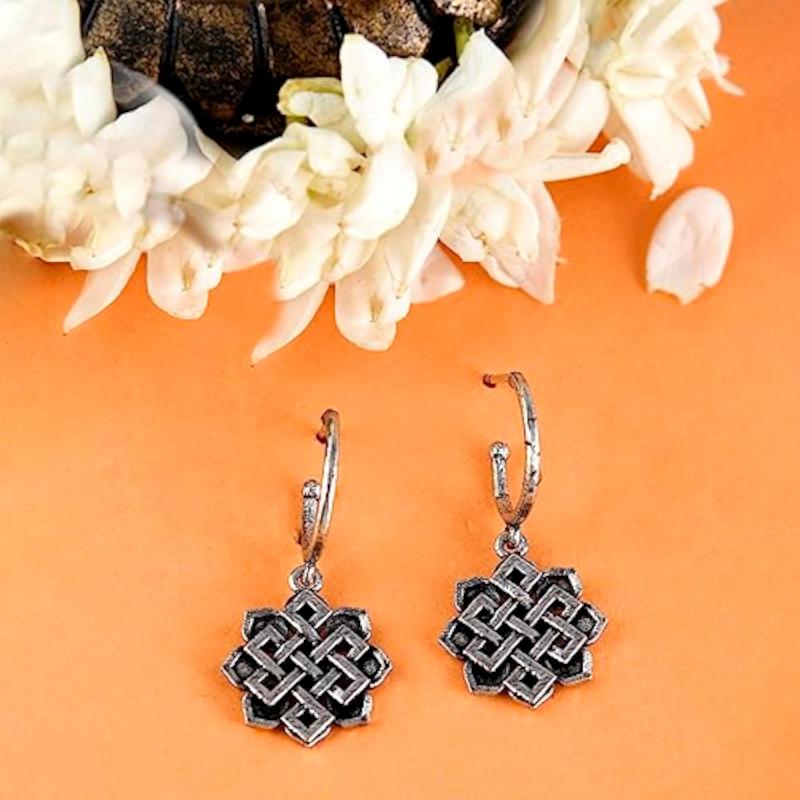 These elegant huggie earrings feature the timeless symbol of the eternal knot, crafted with precision. A perfect accessory for any occasion.