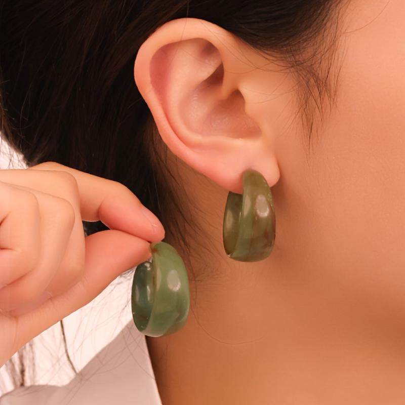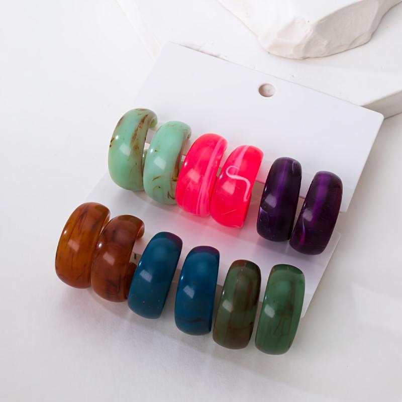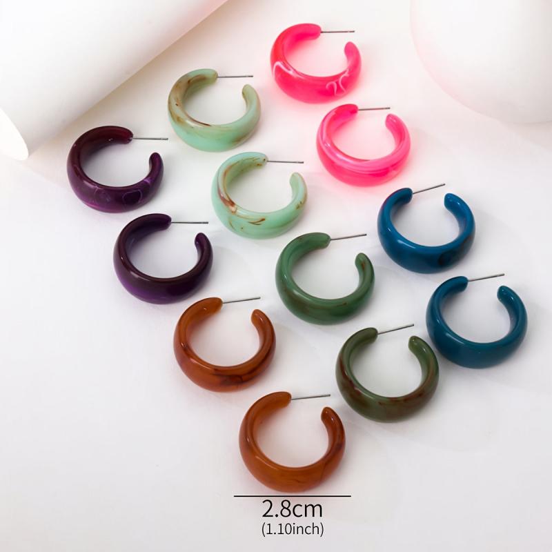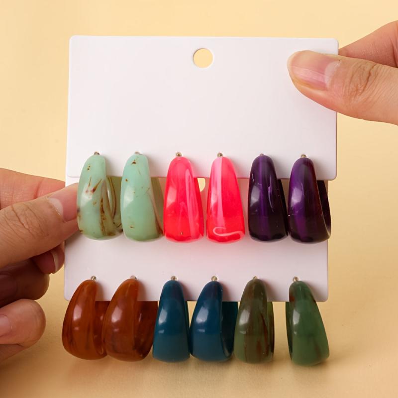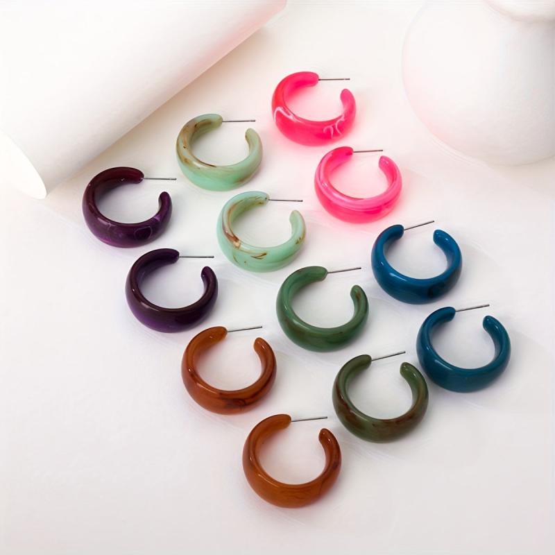 Enhance your style with this trendy set of 12 bohemian acrylic C-shaped earrings designed for women.