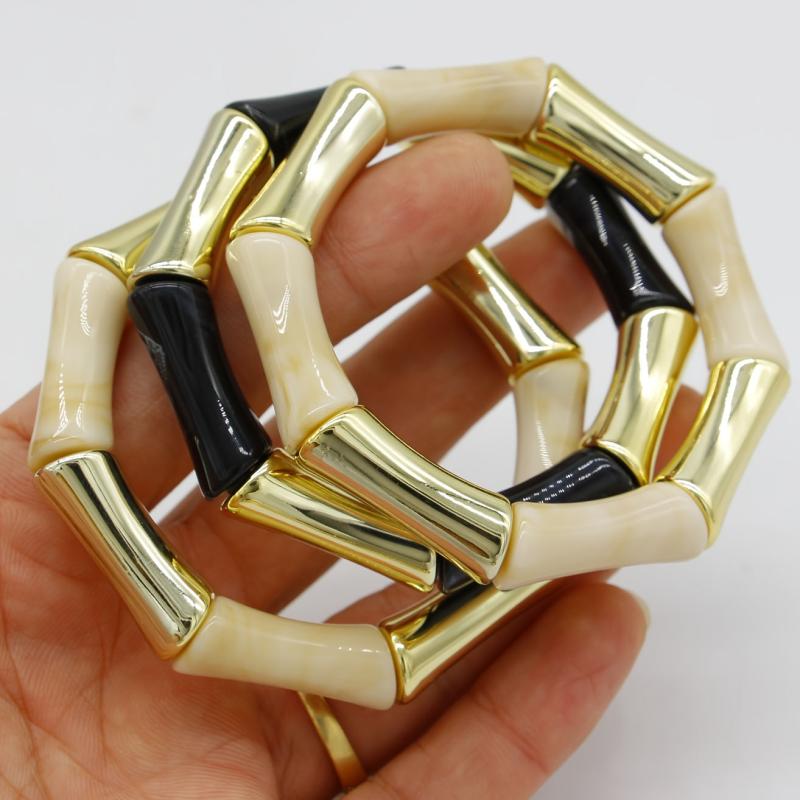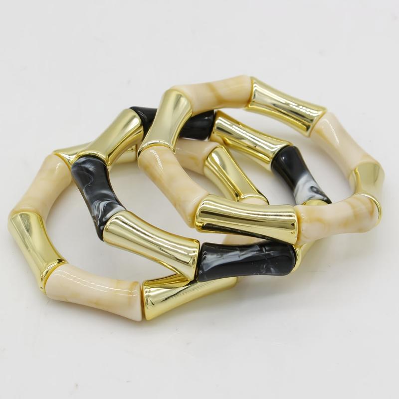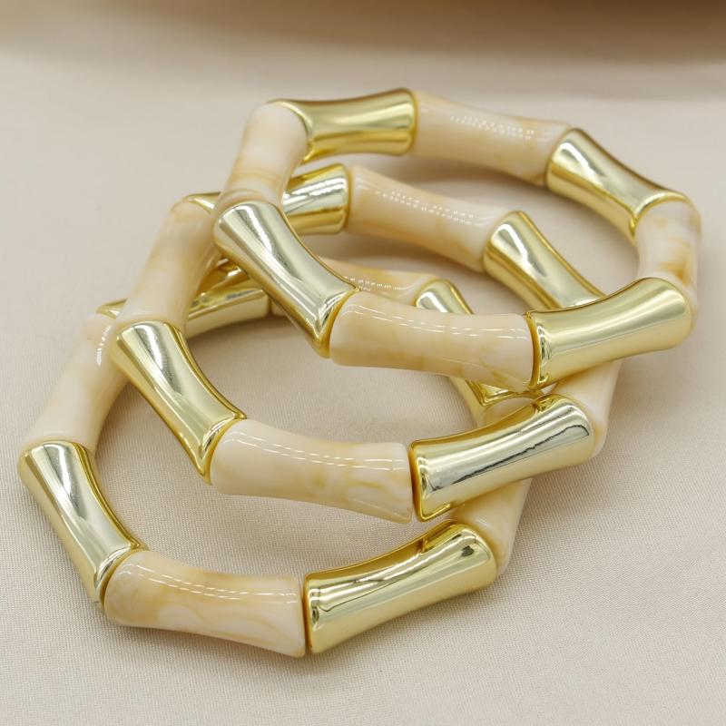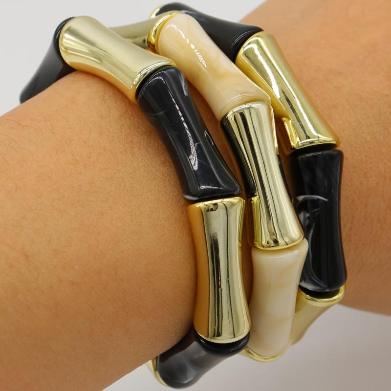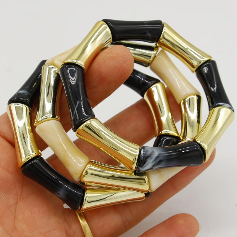 Add a touch of bohemian style with this 3pcs bracelet set featuring acrylic tube beads. Perfect for daily wear or holiday outfits.