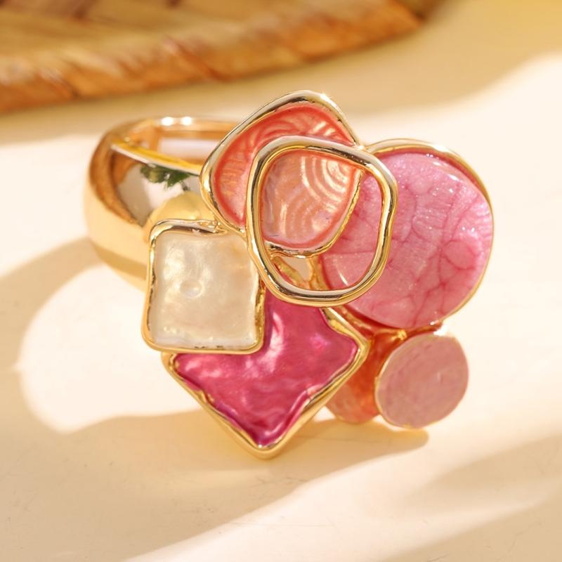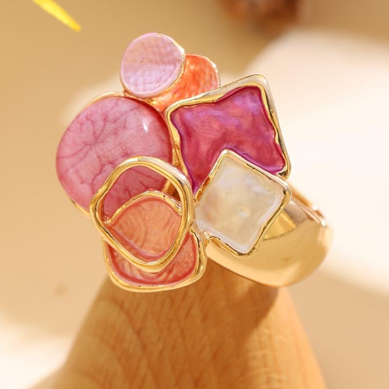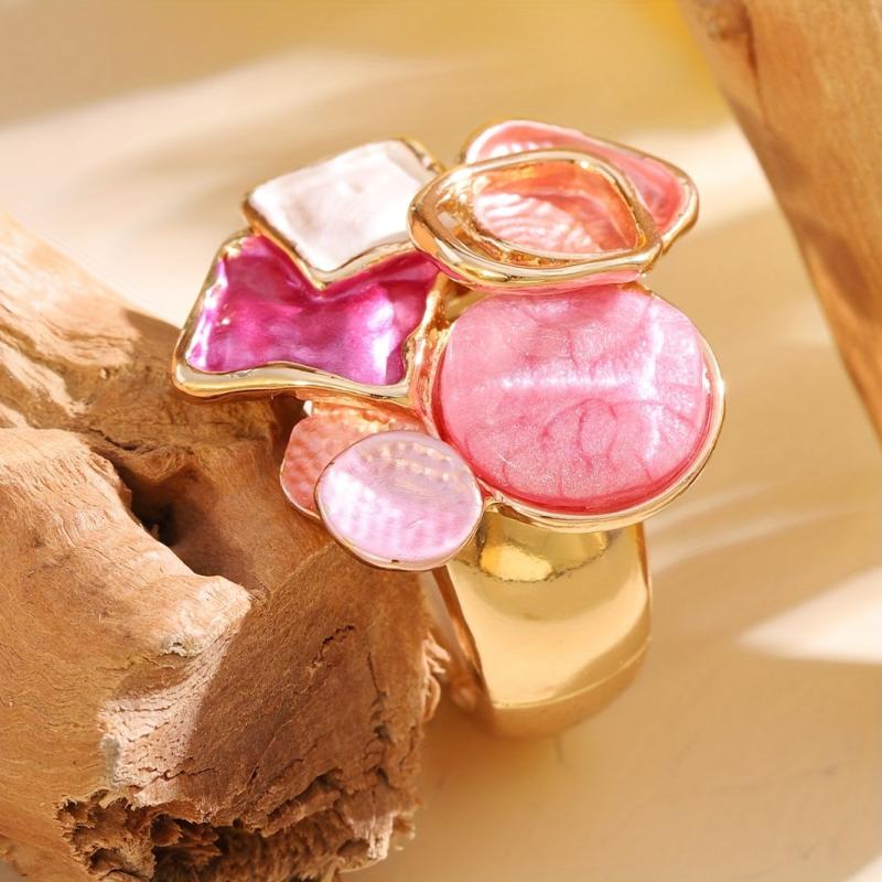 This colorful ring features enamel and resin inlays on a stretchable zinc alloy base. Perfect for daily wear, parties, and casual jewelry.