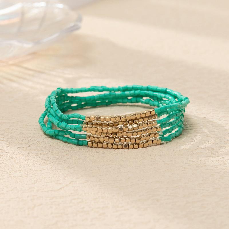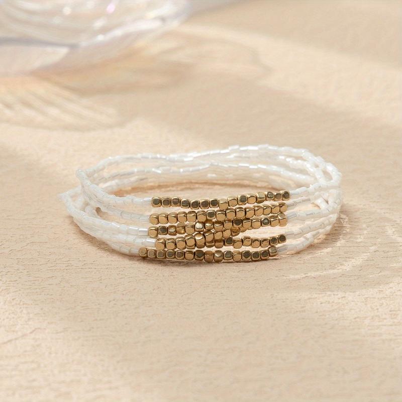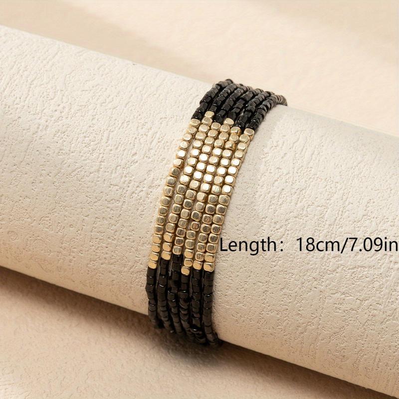 Elevate your style with this vibrant 6-piece bracelet set featuring colorful glass beads and golden accents. Perfect for daily wear or holiday festivities, these woven rope bangles add a bohemian touch to any outfit.