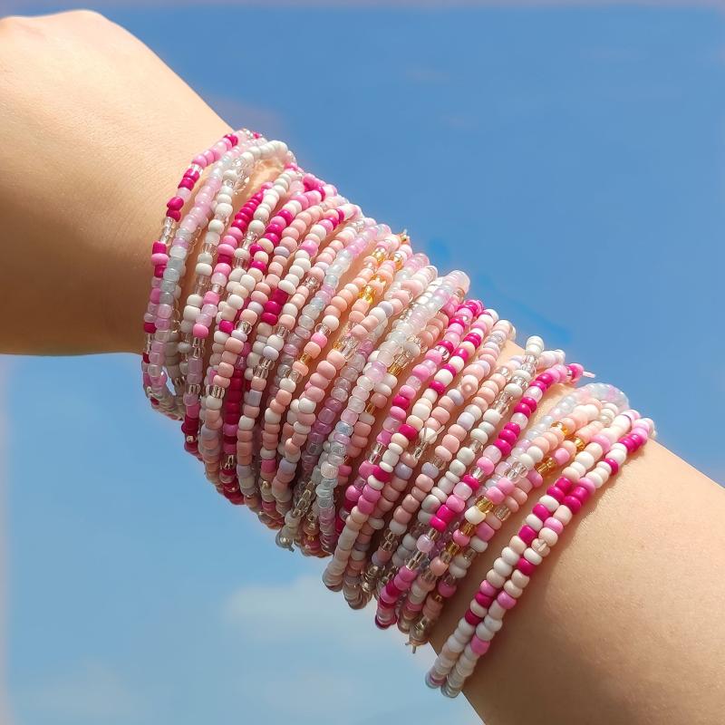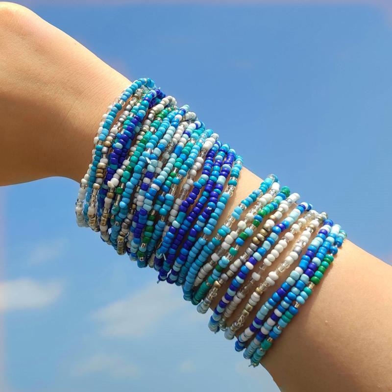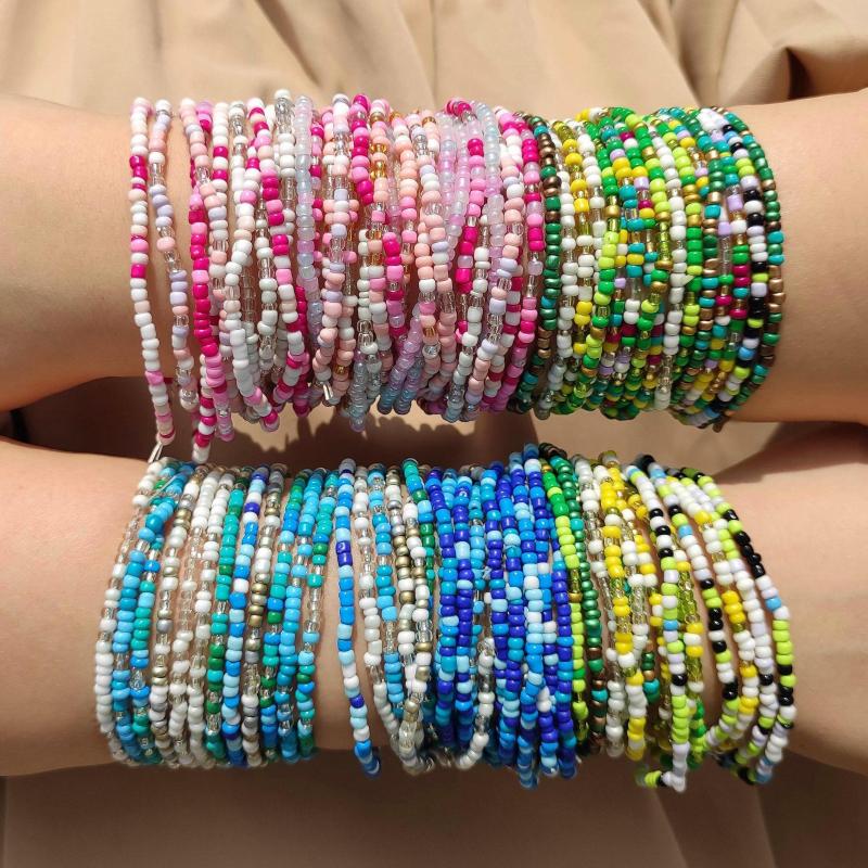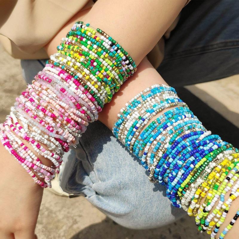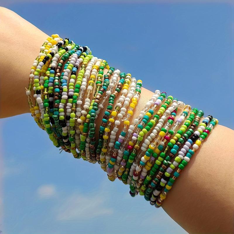 Add a pop of color to your outfit with these vibrant Bohemian beaded elastic bracelets. Lightweight and perfect for summer beach vacations or parties.