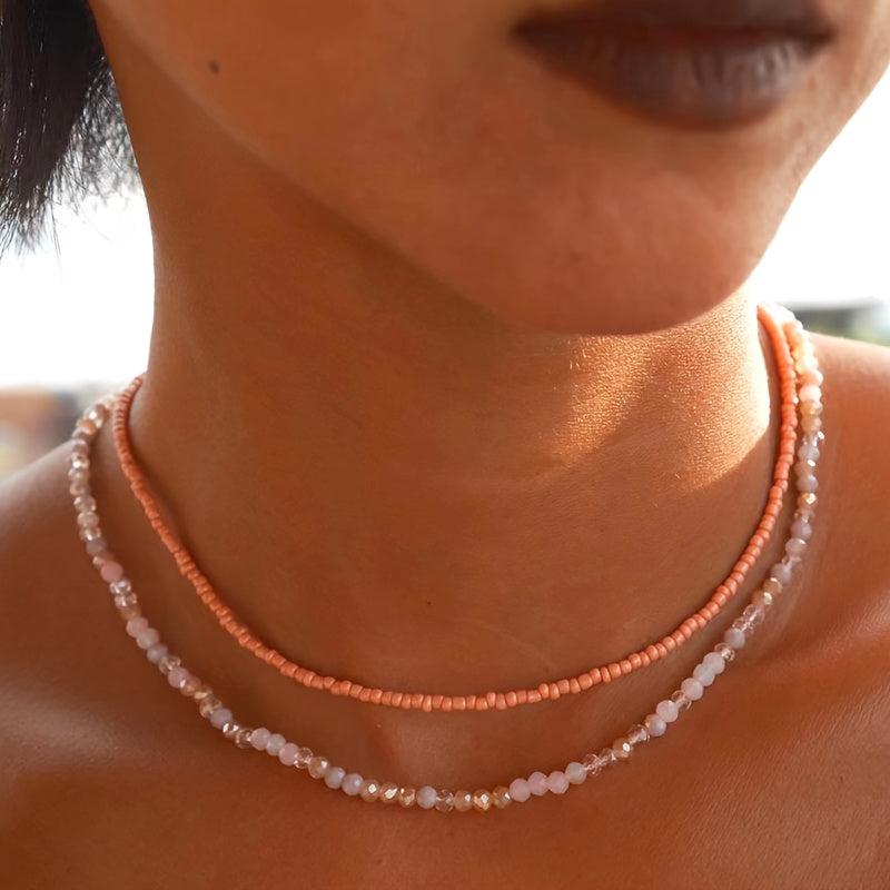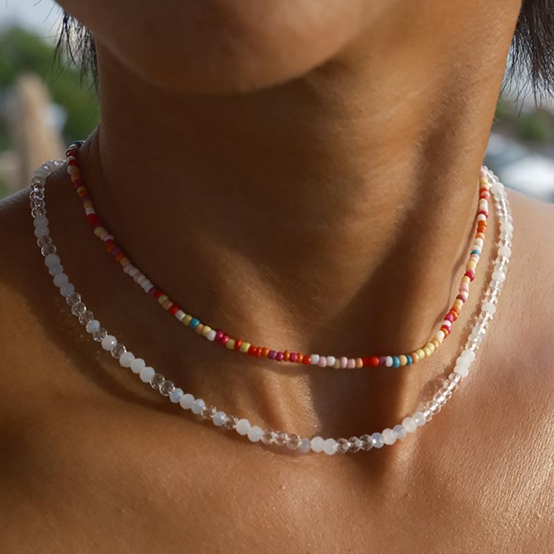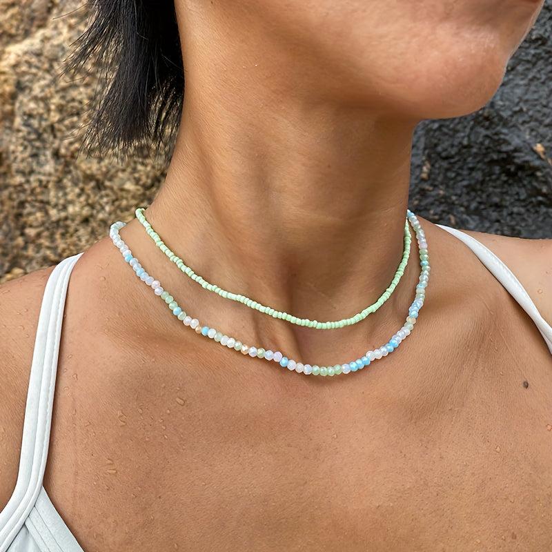 Add a touch of Bohemian charm to your outfit with this beaded necklace set. Perfect for surfer and beach style lovers.