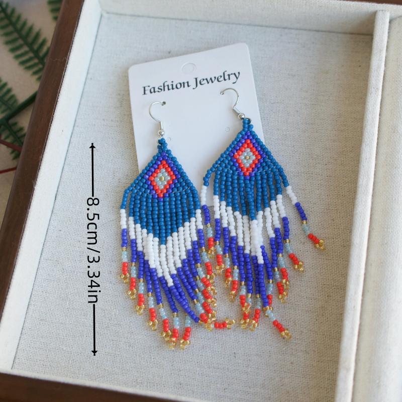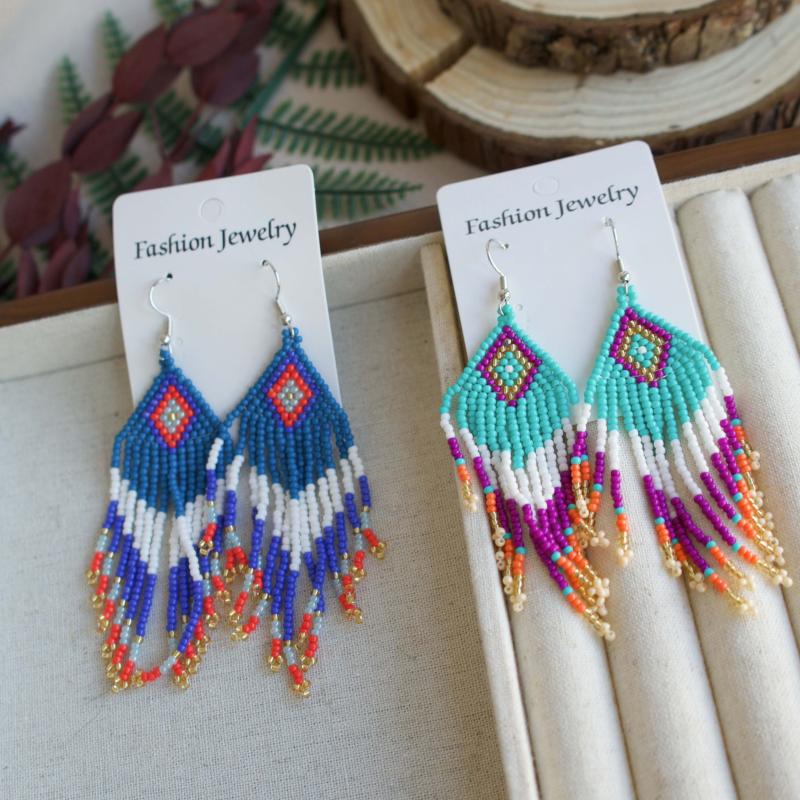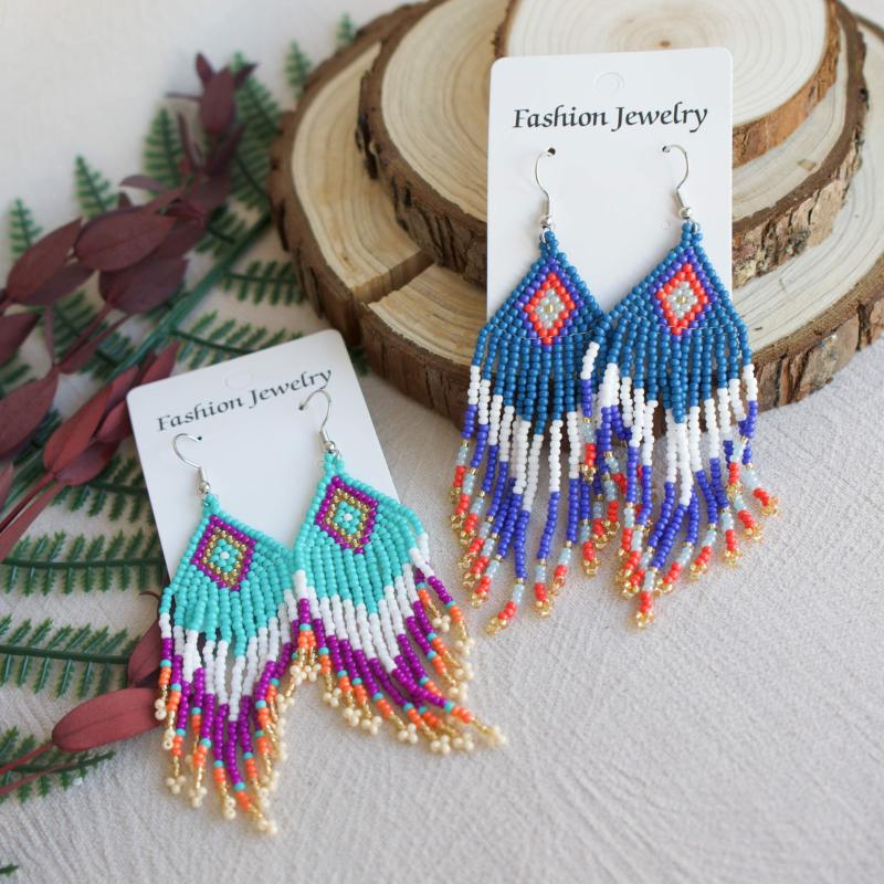 Add a pop of color to your outfit with these boho-chic tassel earrings featuring purple and orange beads. Made with stainless steel posts, they are perfect for casual and dressy occasions.