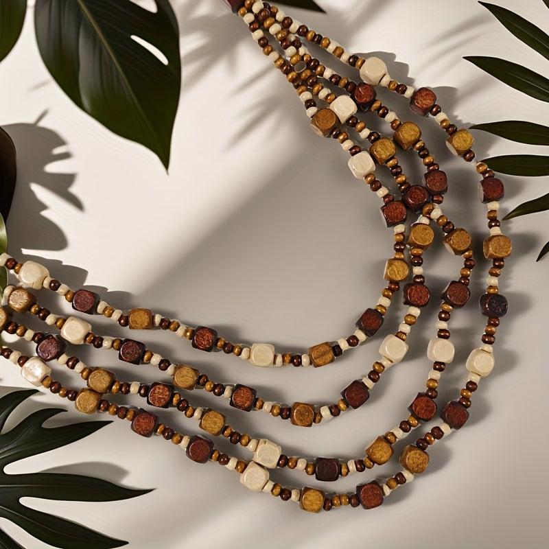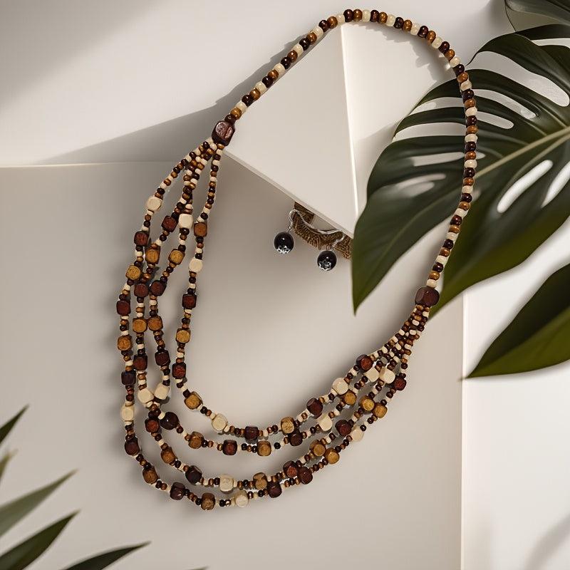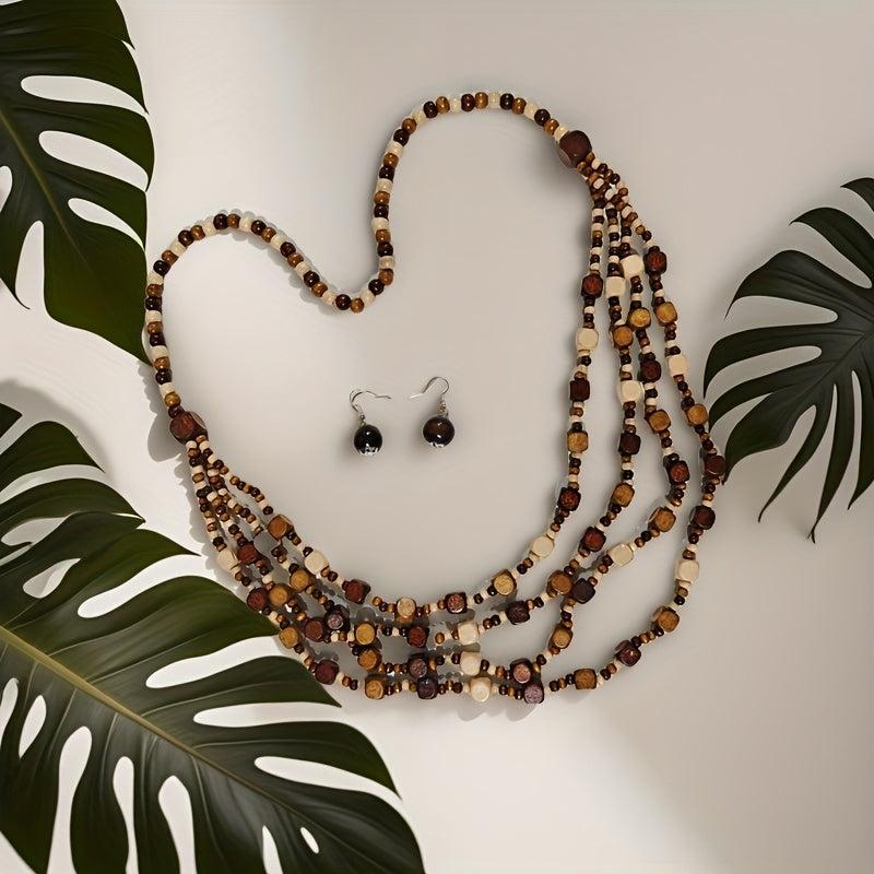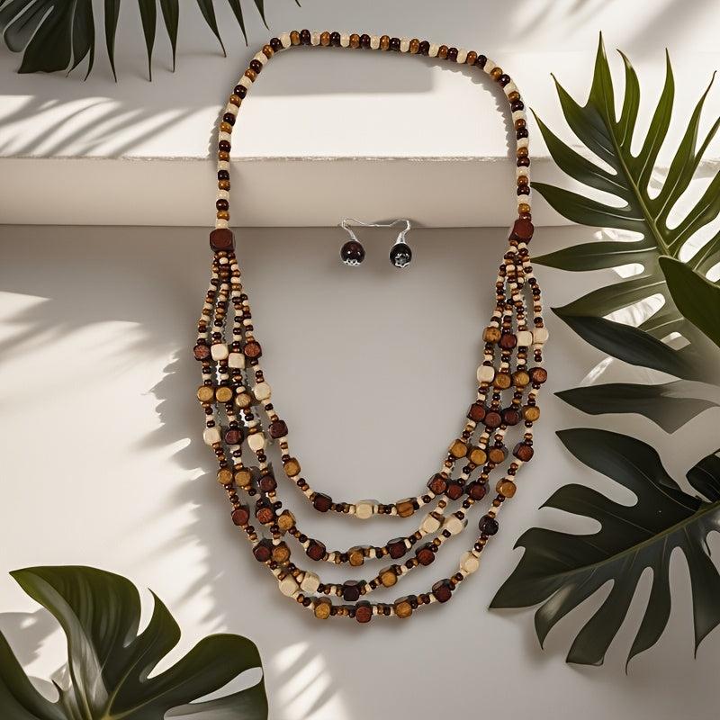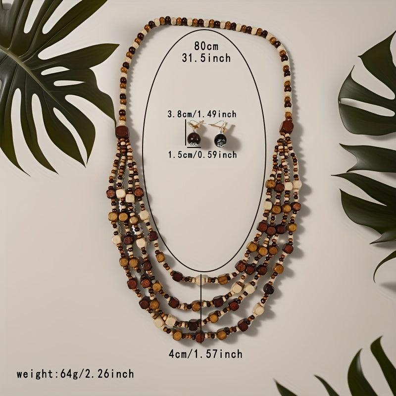 Bohemian Beaded Wooden Necklace and Earrings Set