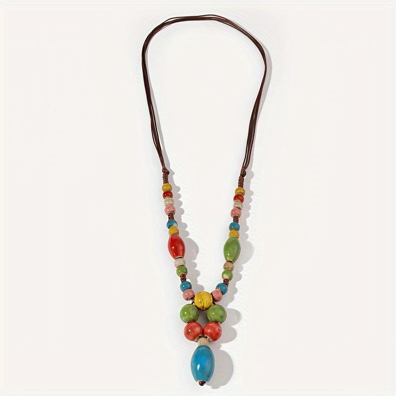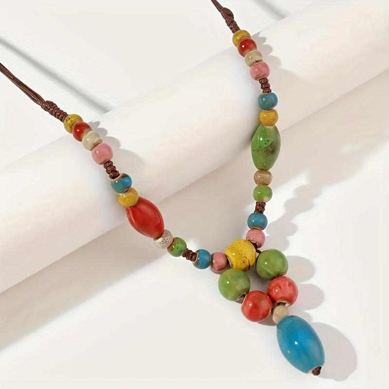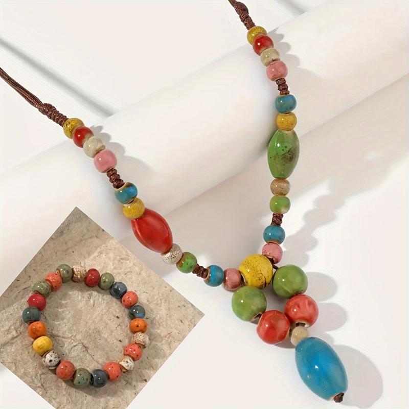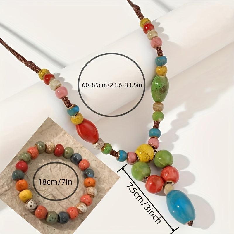 Elevate your style with this Bohemian adjustable ceramic beaded Y necklace and bracelet set. These vacation-style jewelry pieces are versatile accessories suitable for daily wear and holiday occasions.
