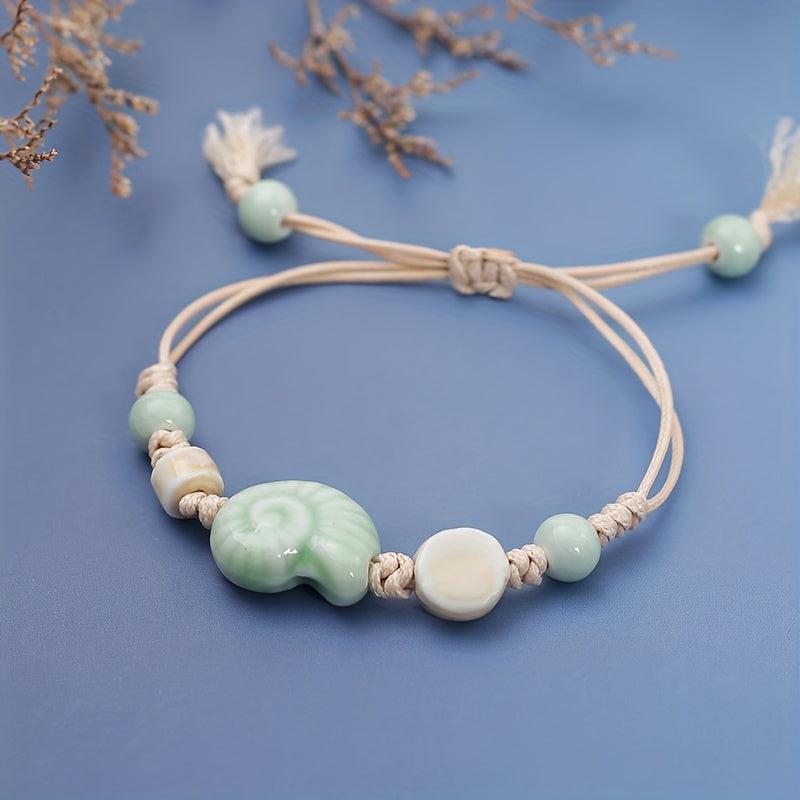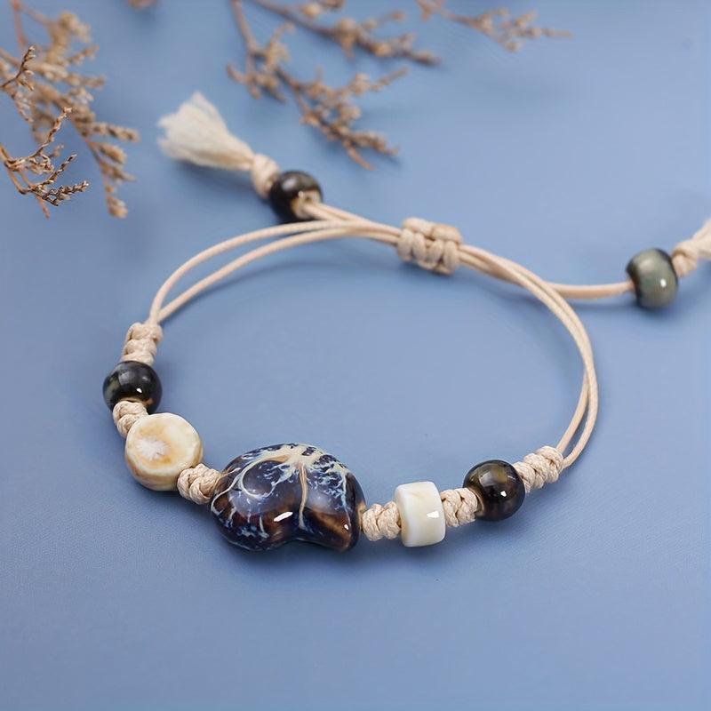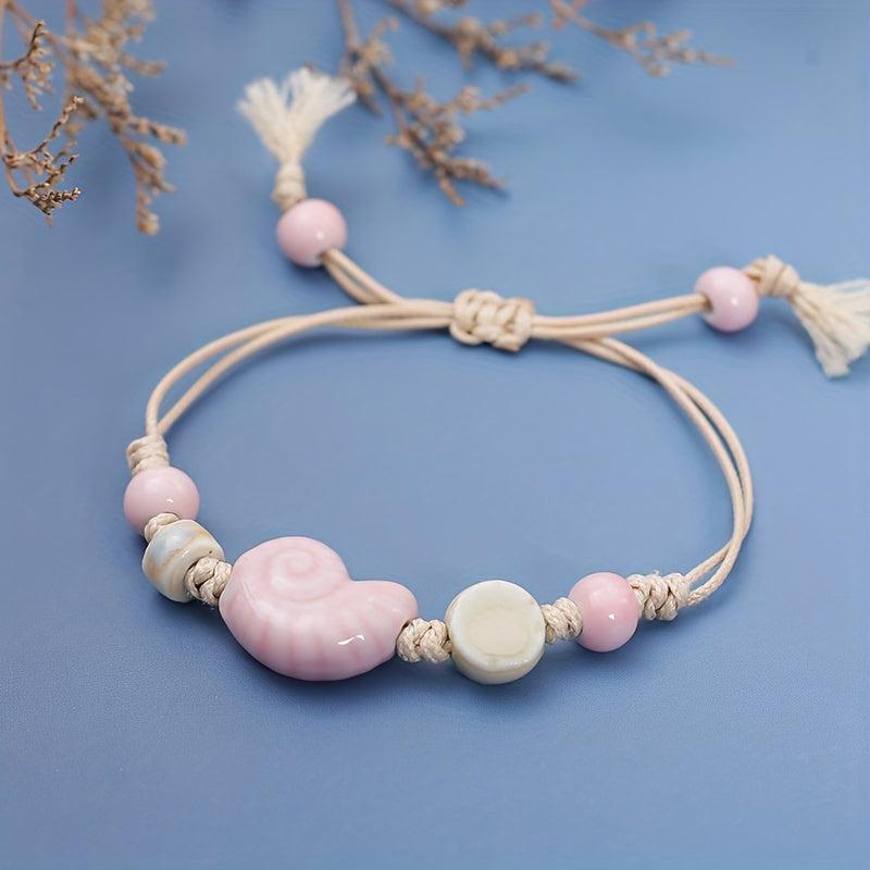 This ceramic charm bracelet features a mix of pastel pink and star beads, creating a spiritual and minimalist look that is perfect for everyday wear.