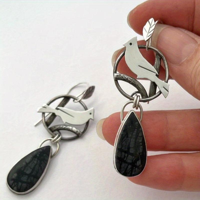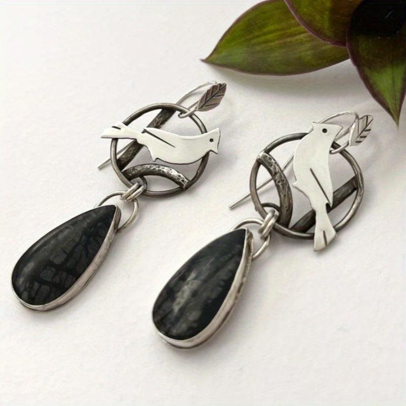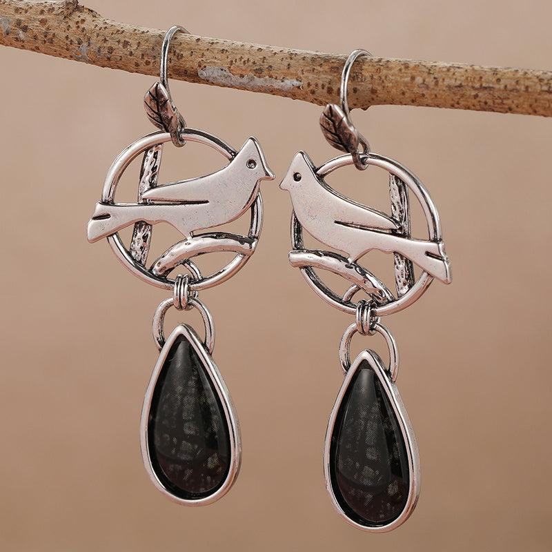 Elevate your look with these bohemian retro copper bird earrings featuring teardrop gemstones. Perfect for parties and daily wear, these vintage-style earrings make an ideal Christmas gift.