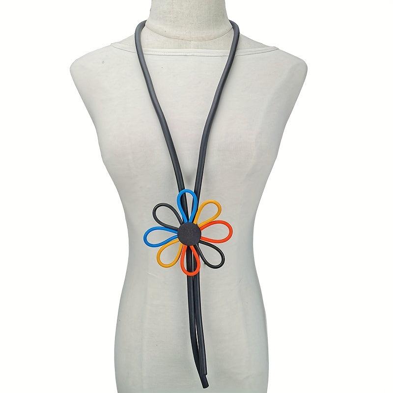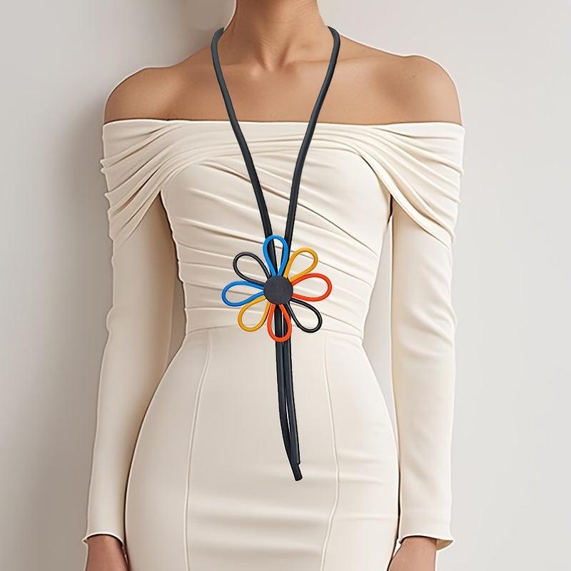 This vibrant Bohemian floral pendant necklace features an orange flower with stem design, making it a perfect ethnic jewelry piece for parties and casual attire. It also makes a great accessory gift for women.